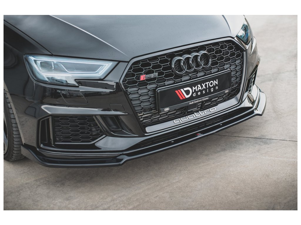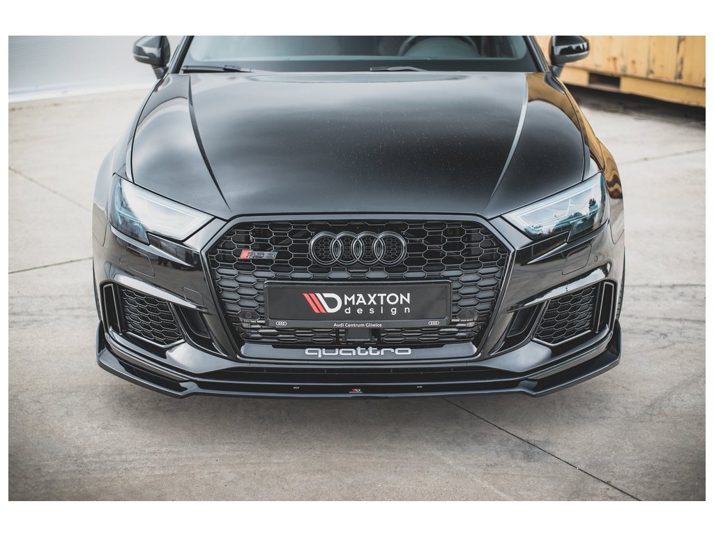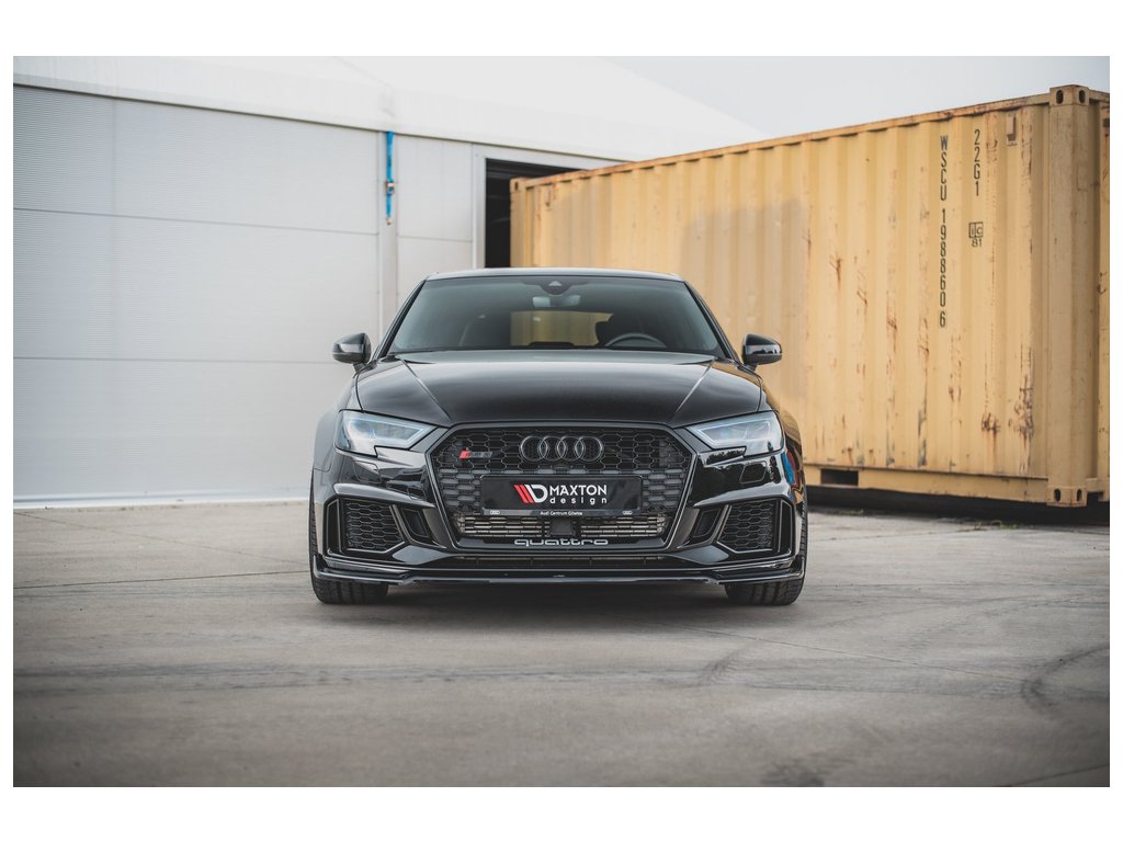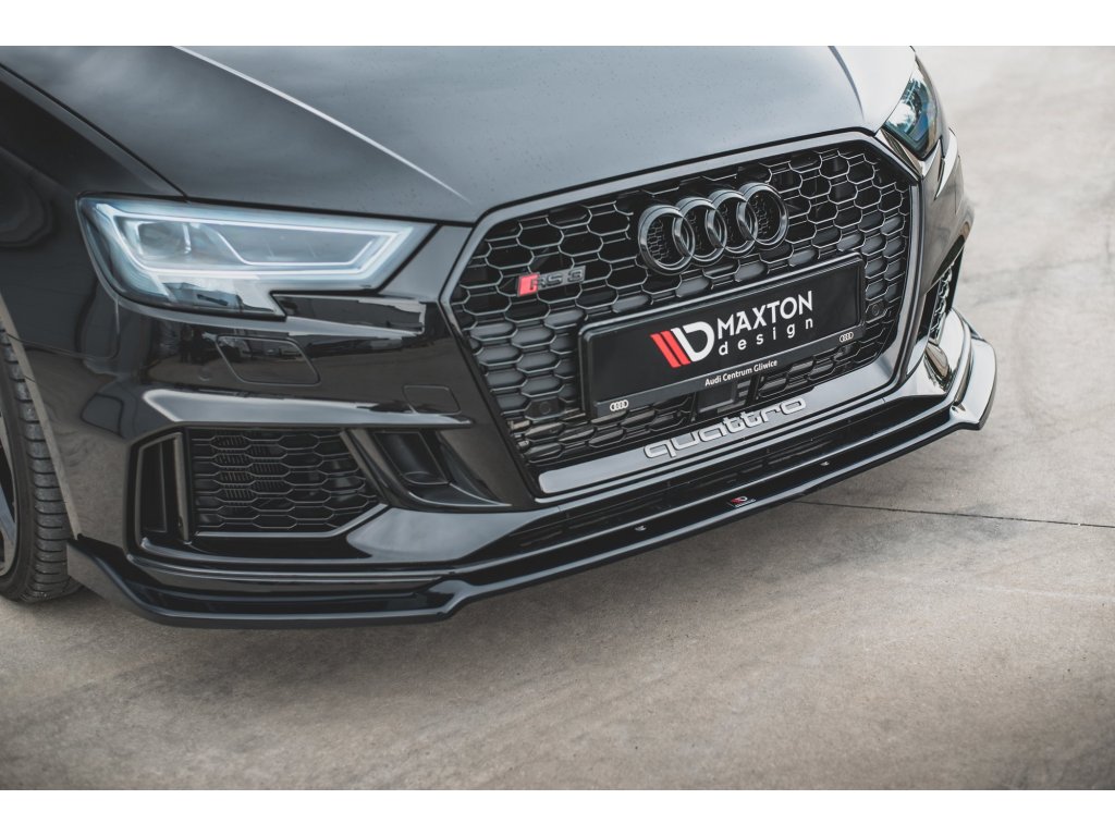 Maxton Design spoiler pod přední nárazník ver.3 pro vozidlo Audi RS3 8V Facelift . Povrchová úprava spoileru černý lesklý plast ABS.