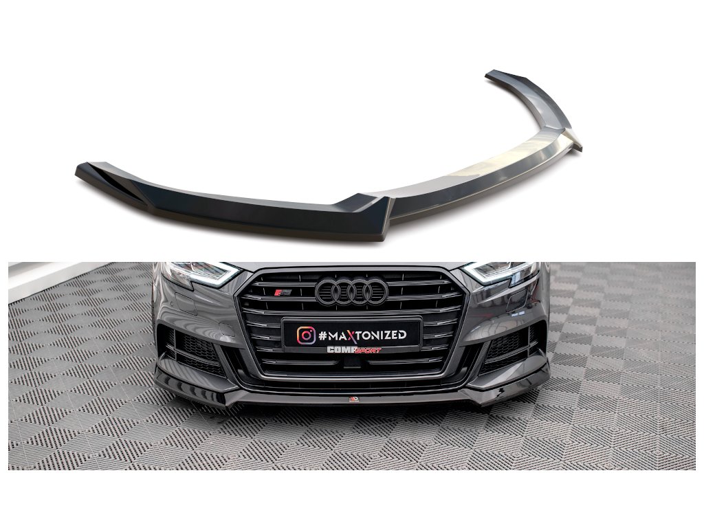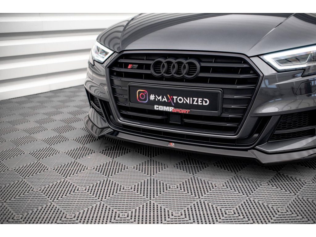 Maxton Design spoiler pod přední nárazník ver.3 pro vozidlo Audi S3 8V FL . Povrchová úprava spoileru carbon-Look.