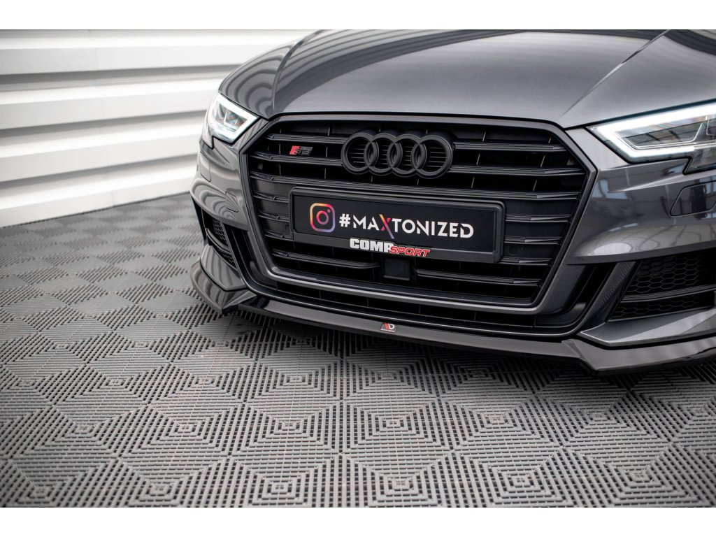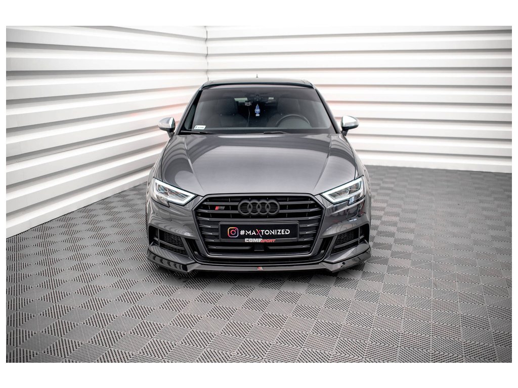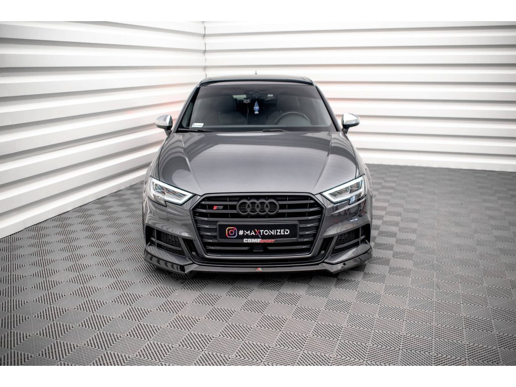 Maxton Design spoiler pod přední nárazník ver.3 pro vozidlo Audi S3 8V FL . Povrchová úprava spoileru černý lesklý plast ABS.
