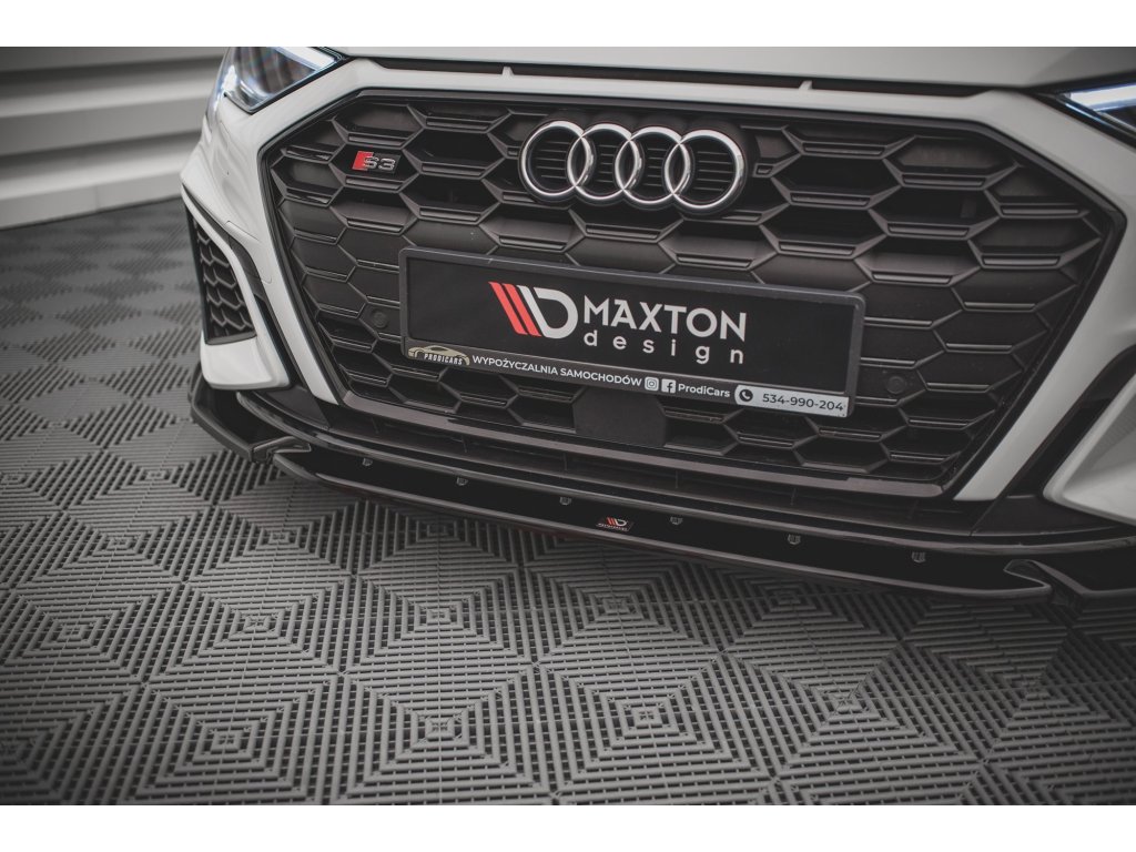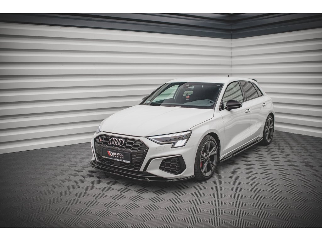 Maxton Design spoiler pod přední nárazník ver.3 pro vozidlo Audi S3 8Y . Povrchová úprava spoileru carbon-Look.