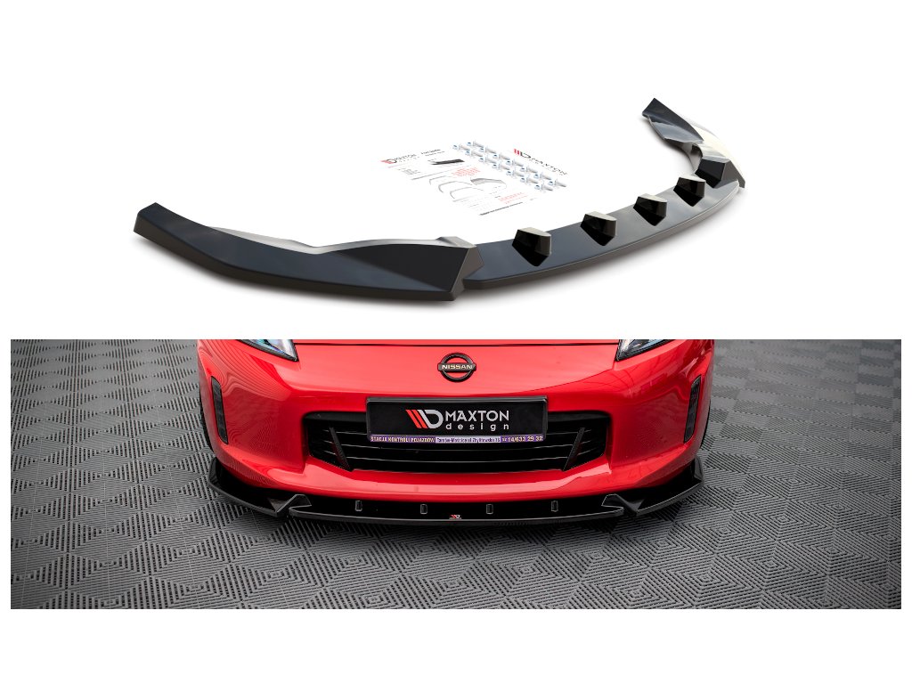 Maxton Design spoiler pod přední nárazník ver.3 pro vozidlo Nissan 370Z Facelift . Povrchová úprava spoileru carbon-Look.