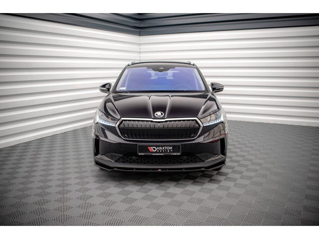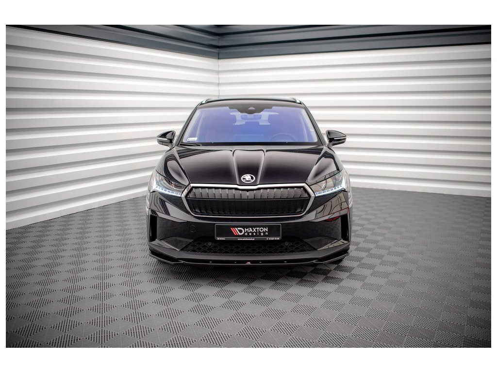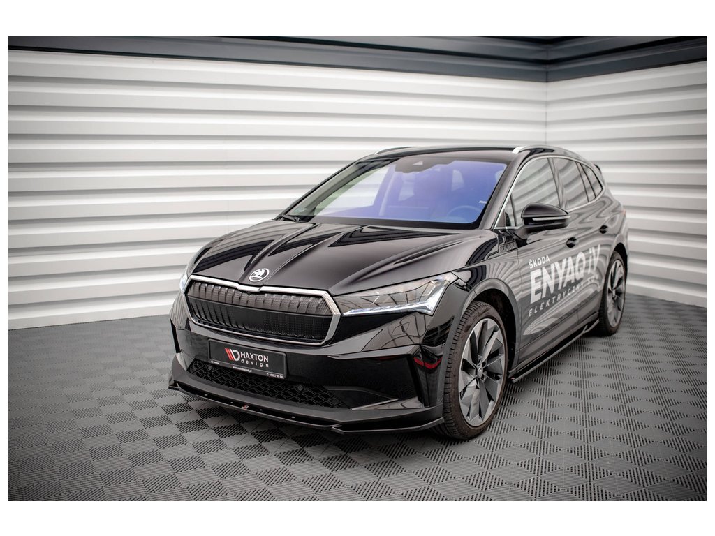 Maxton Design spoiler pod přední nárazník ver.3 pro vozidlo Škoda Enyaq iV Mk1 . Povrchová úprava spoileru černý lesklý plast ABS.