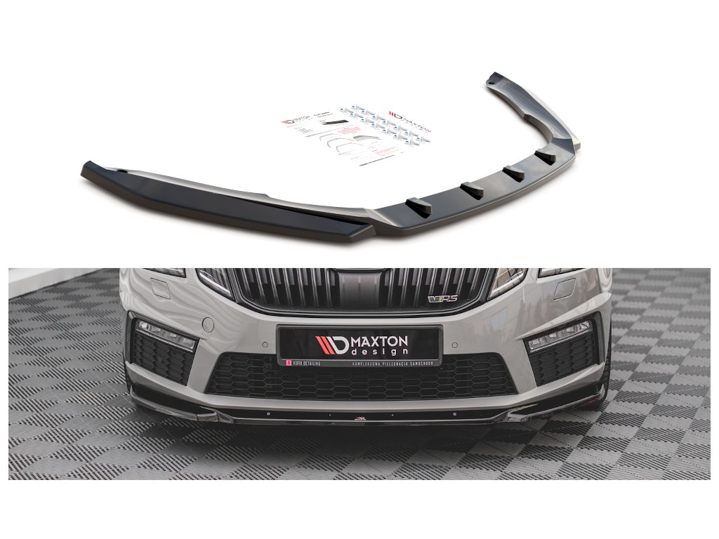 Maxton Design spoiler pod přední nárazník ver.3 pro Škoda Octavia RS Facelift Mk3, carbon-Look