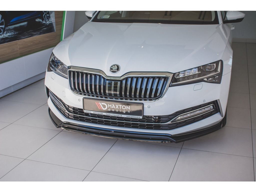 Maxton Design spoiler pod přední nárazník ver.3 pro vozidlo Škoda Superb Mk3 FL Facelift. Povrchová úprava spoileru carbon-Look.