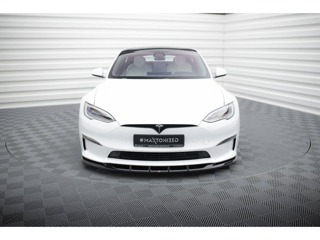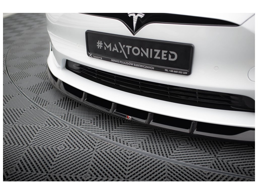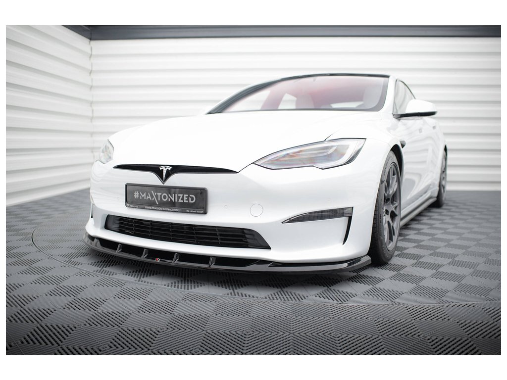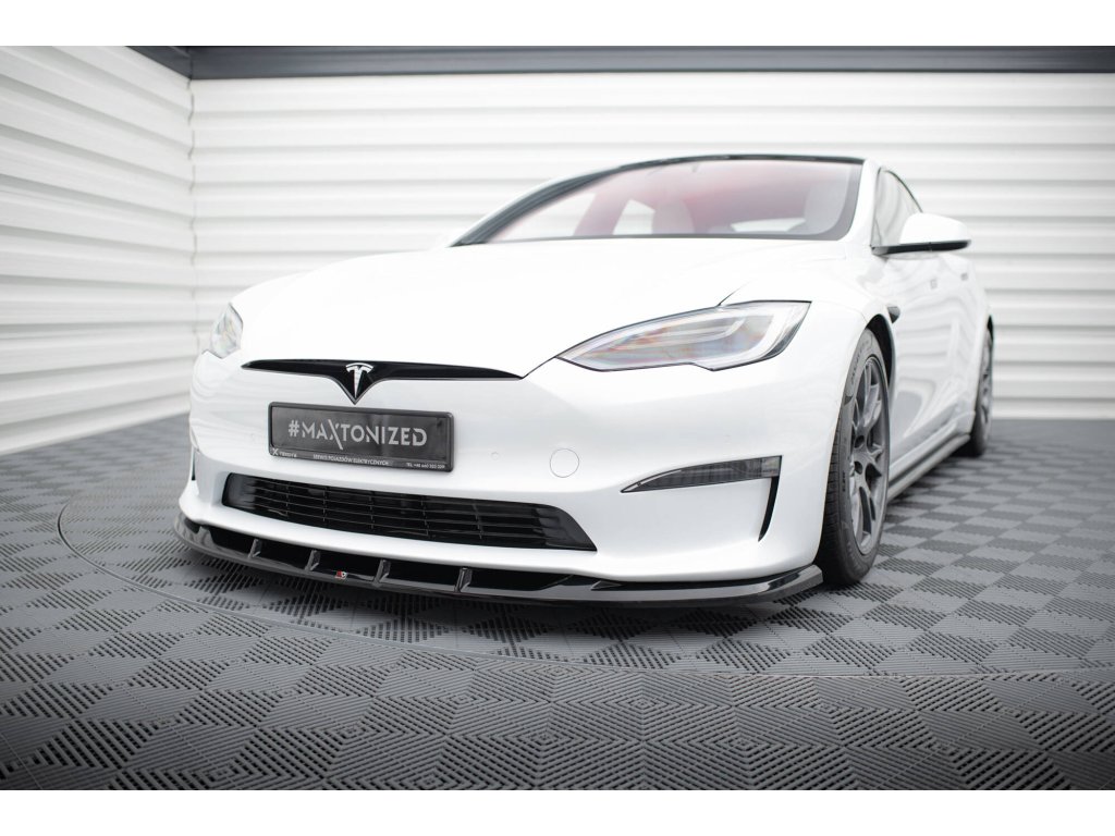 Maxton Design spoiler pod přední nárazník ver.3 pro vozidlo Tesla Model S Plaid Mk1 Facelift . Povrchová úprava spoileru černý lesklý plast ABS.