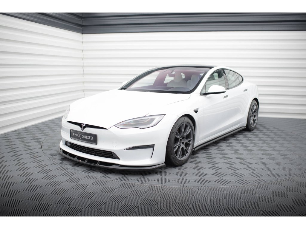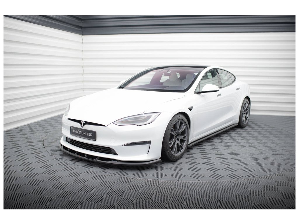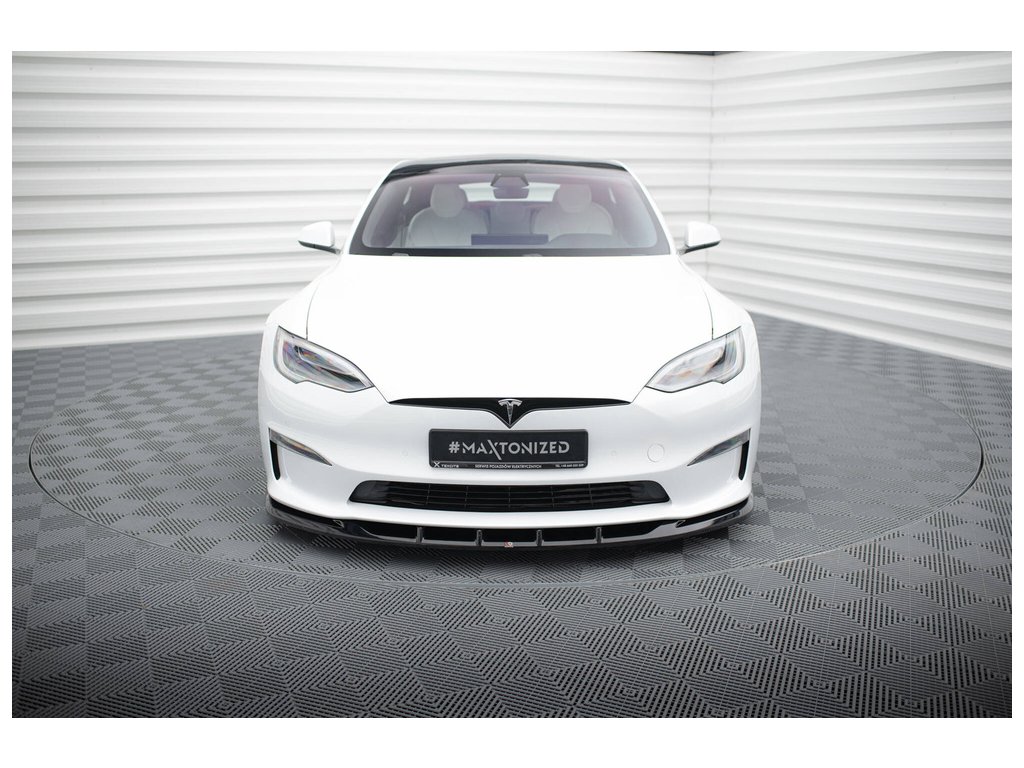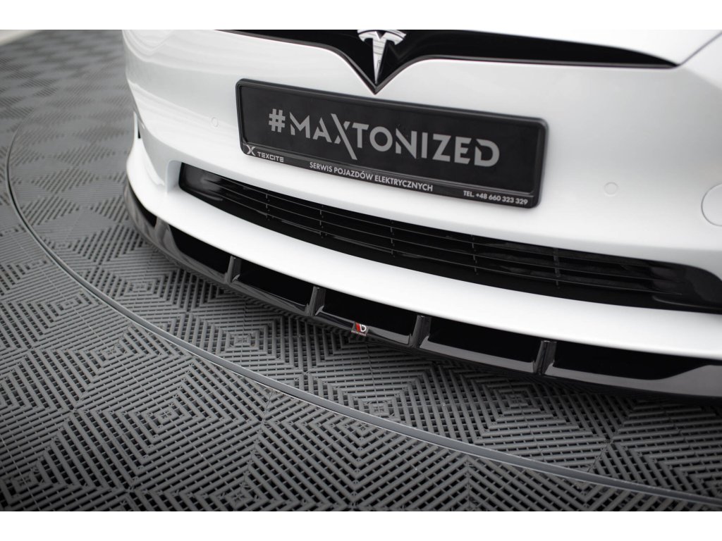 Maxton Design spoiler pod přední nárazník ver.3 pro vozidlo Tesla Model S Plaid Mk1 Facelift . Povrchová úprava spoileru černý lesklý plast ABS.
