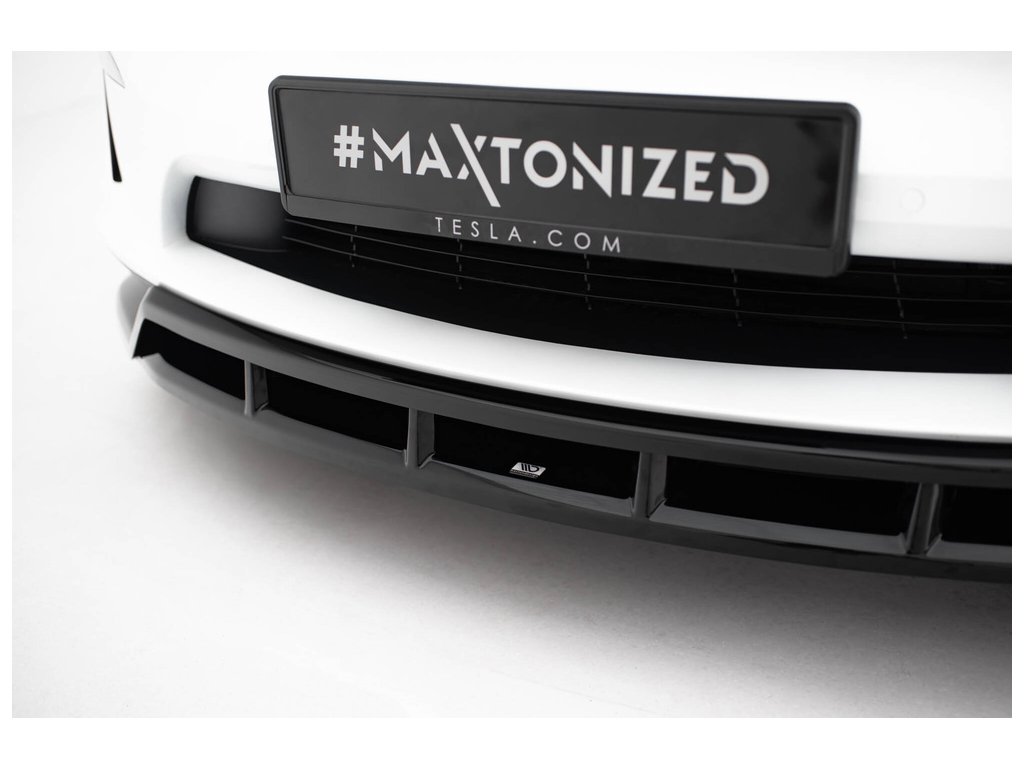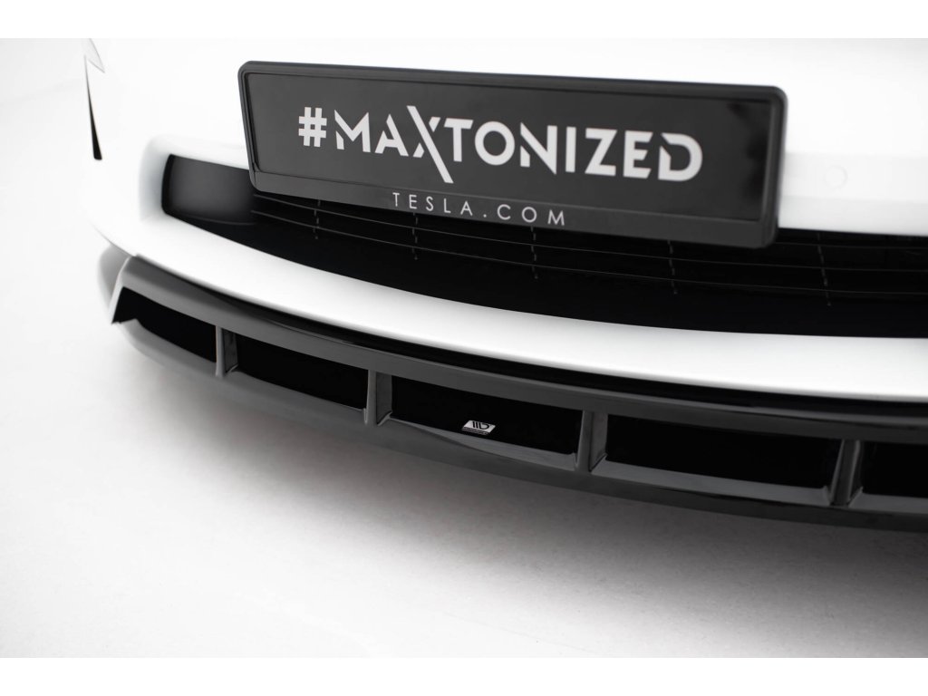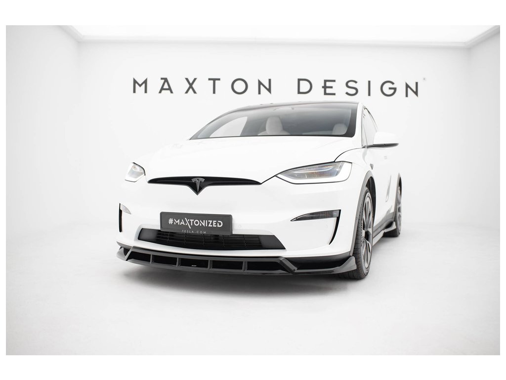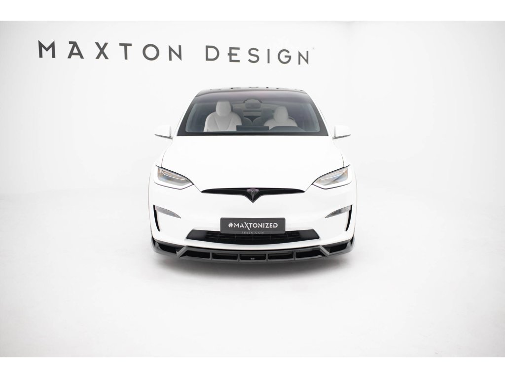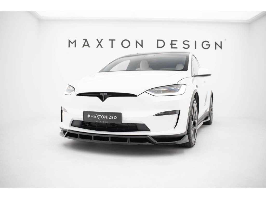 Maxton Design spoiler pod přední nárazník ver.3 pro vozidlo Tesla Model X Mk1 Facelift . Povrchová úprava spoileru černý lesklý plast ABS.