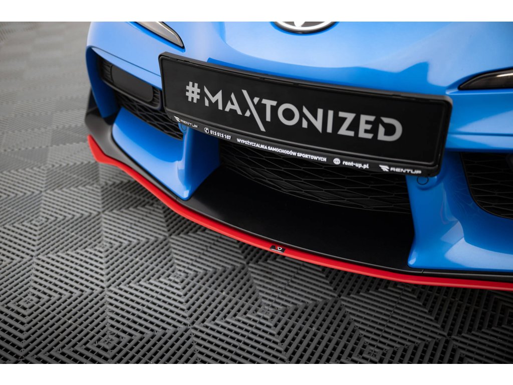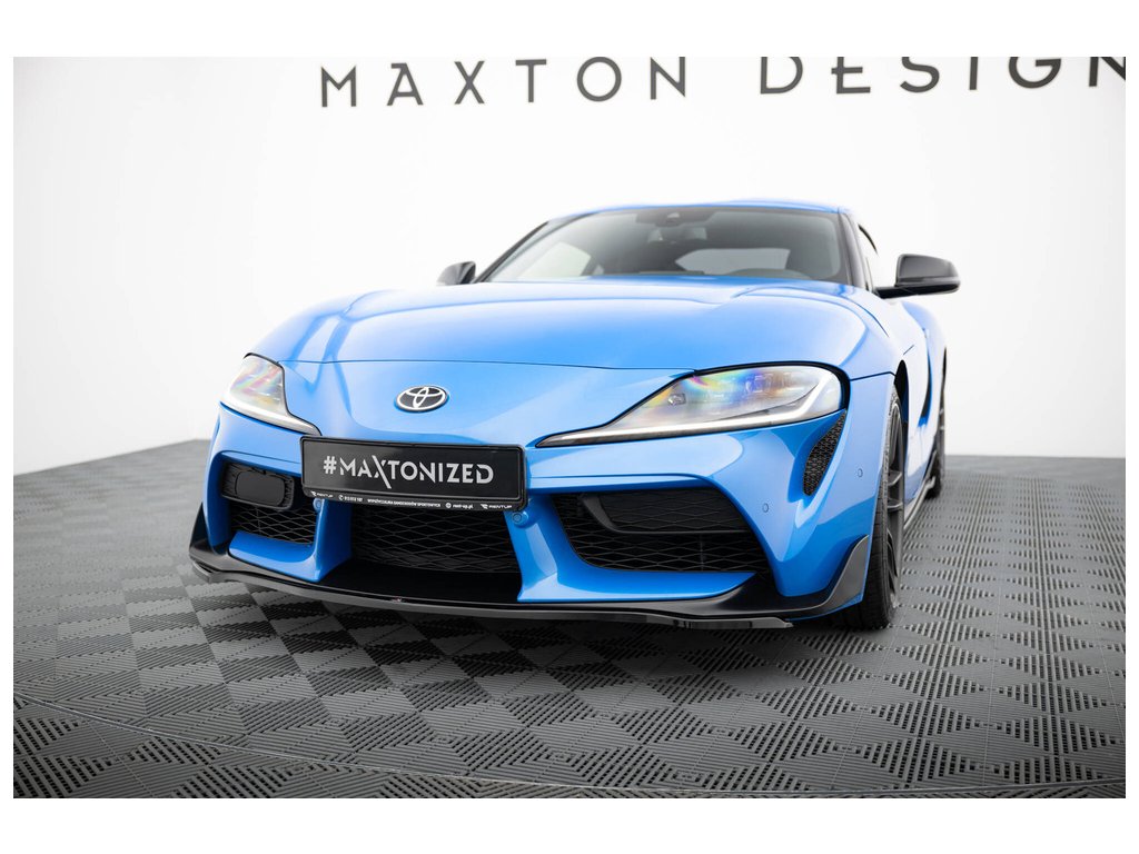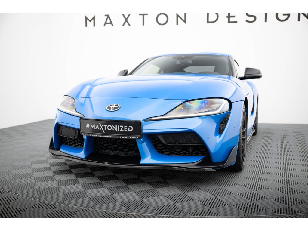 Maxton Design spoiler pod přední nárazník ver.3 pro vozidlo Toyota Supra Mk5 . Povrchová úprava spoileru černý lesklý plast ABS.