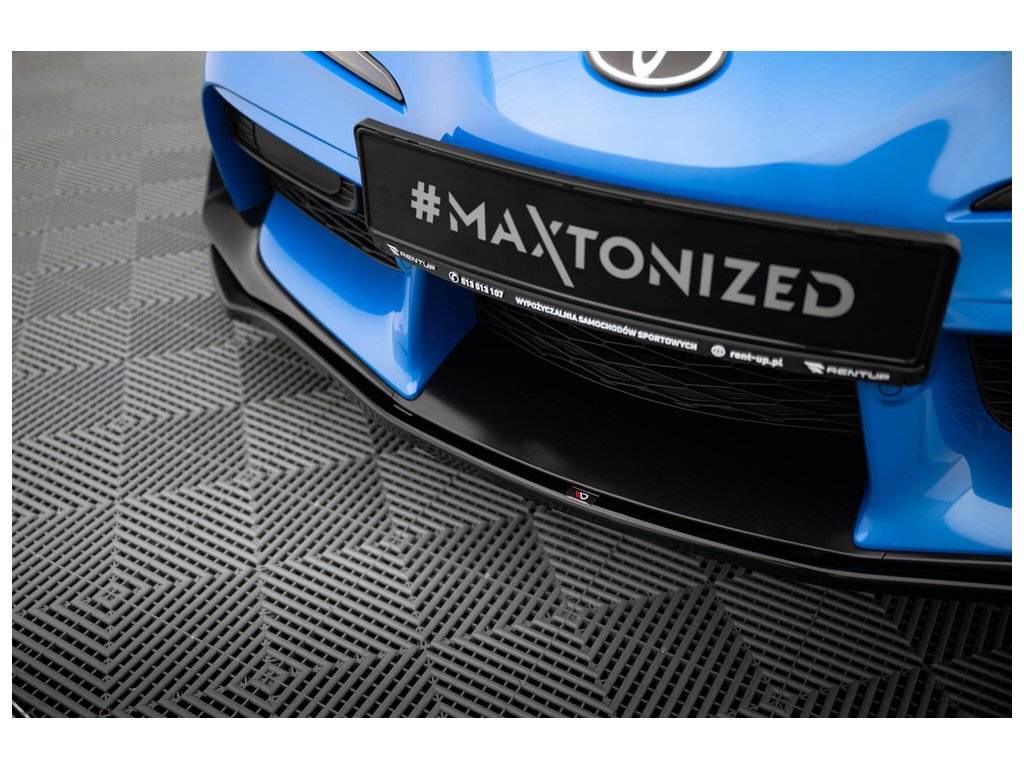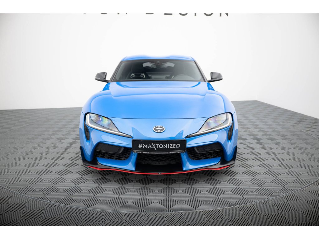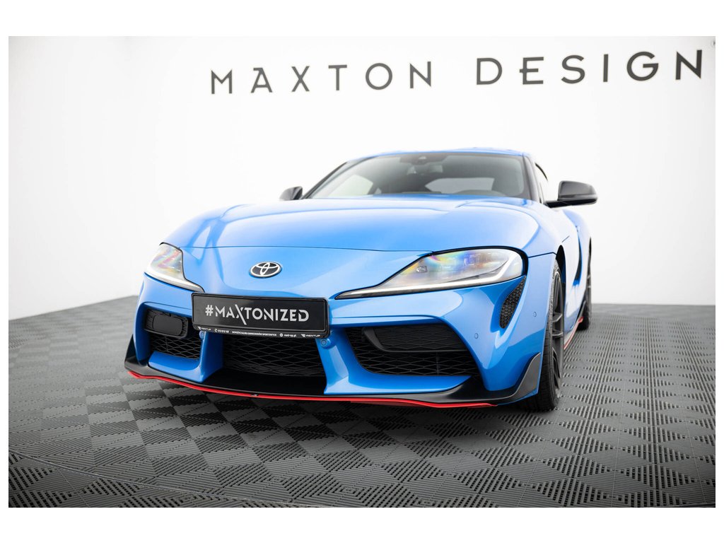 Maxton Design spoiler pod přední nárazník ver.3 pro vozidlo Toyota Supra Mk5 . Povrchová úprava spoileru červený lesklý plast ABS.