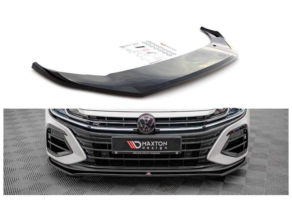 Maxton Design spoiler pod přední nárazník ver.3 pro vozidlo Volkswagen Arteon R . Povrchová úprava spoileru carbon-Look.