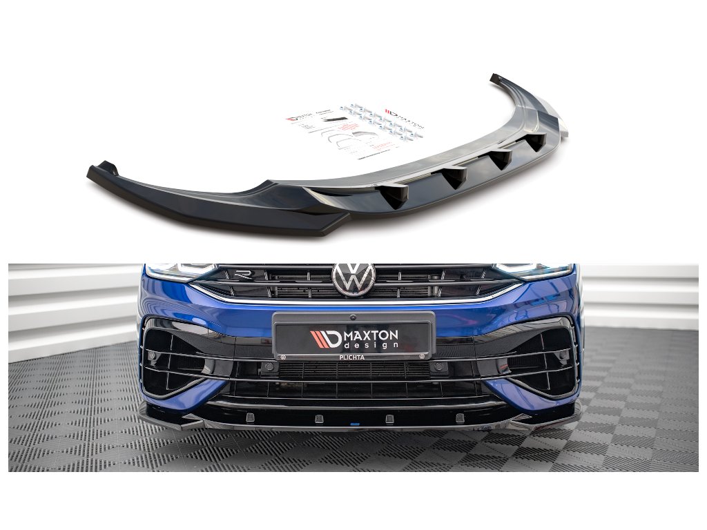 Maxton Design spoiler pod přední nárazník ver.3 pro vozidlo Volkswagen Tiguan R Mk2 Facelift . Povrchová úprava spoileru černý lesklý plast ABS.