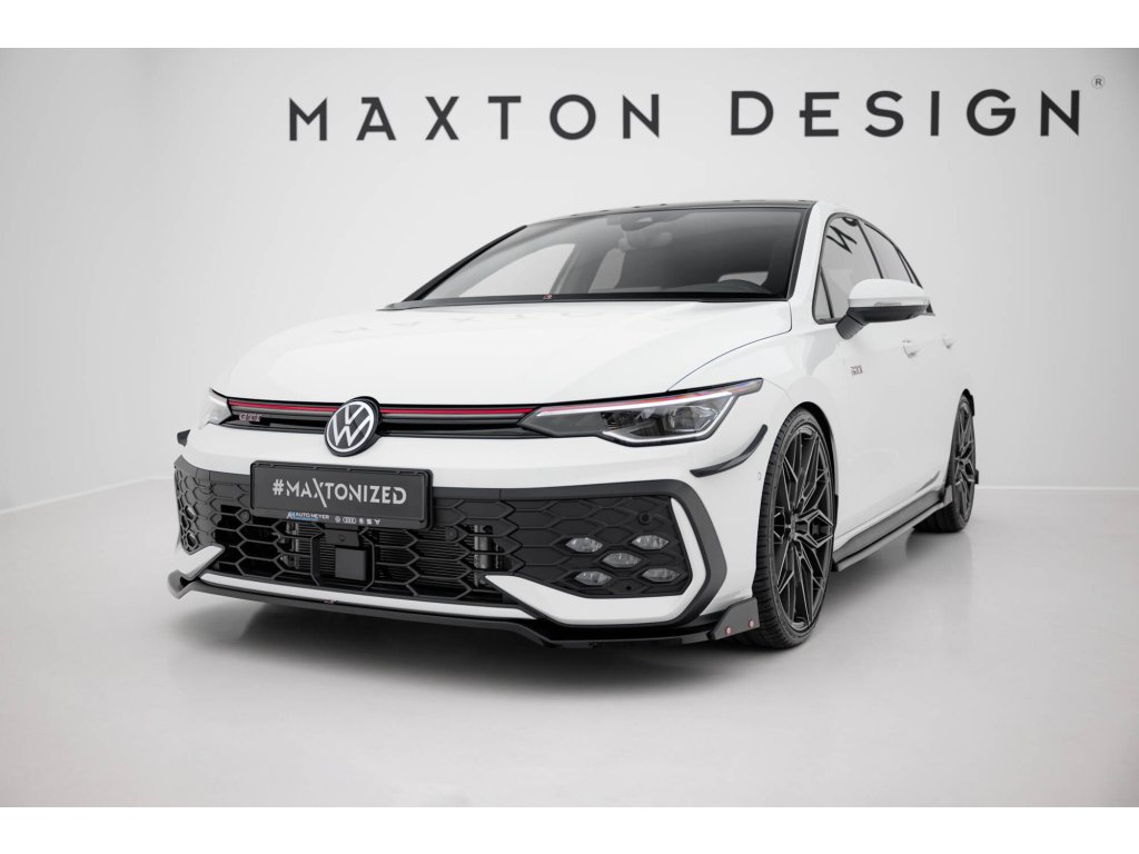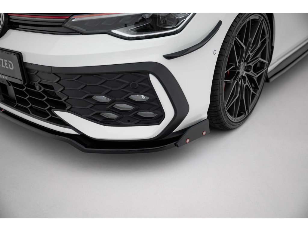 Maxton Design spoiler pod přední nárazník ver.3 s křidélky pro Volkswagen Golf GTI Mk8 Facelift, černý lesklý plast ABS