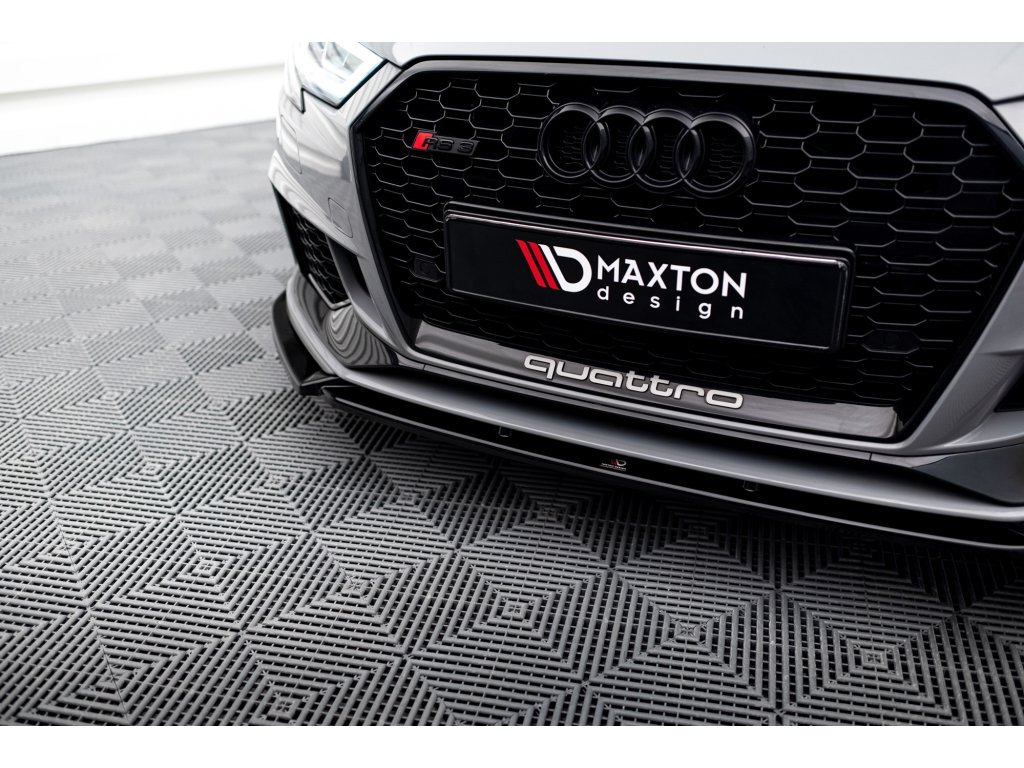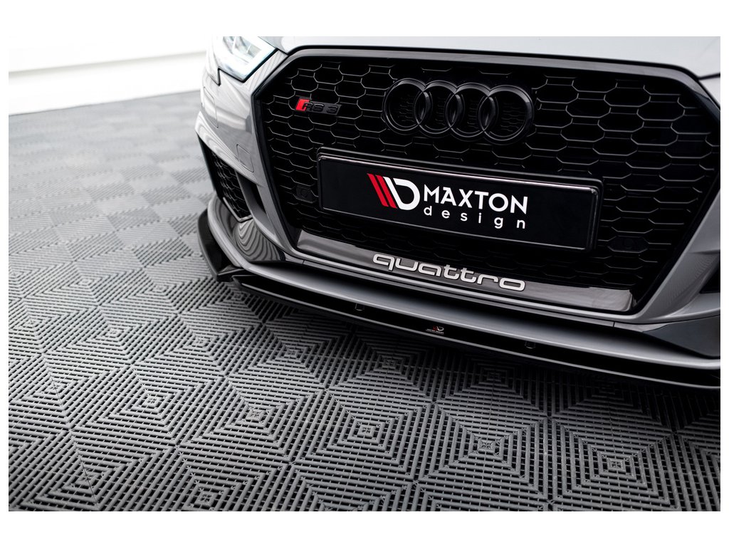 Maxton Design spoiler pod přední nárazník ver.4 pro vozidlo Audi RS3 8V Facelift . Povrchová úprava spoileru černý lesklý plast ABS.