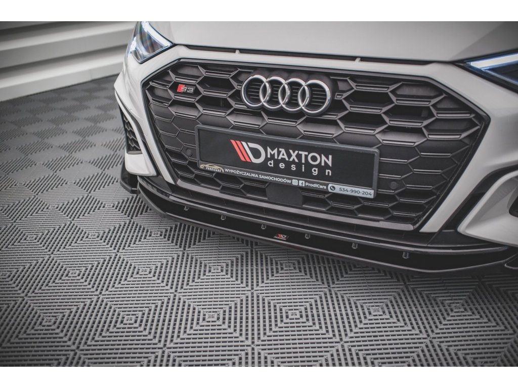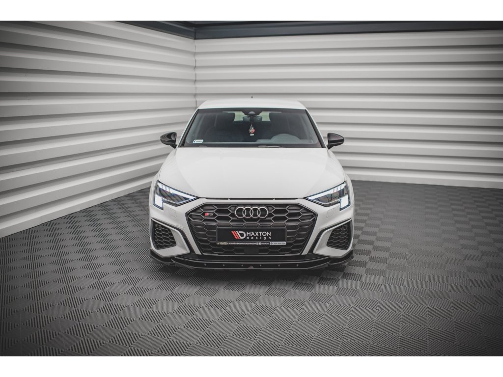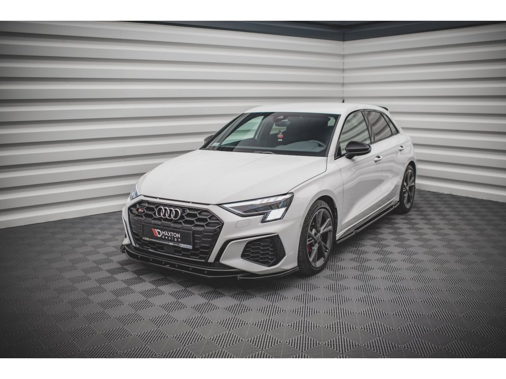 Maxton Design spoiler pod přední nárazník ver.4 pro vozidlo Audi S3 8Y . Povrchová úprava spoileru carbon-Look.