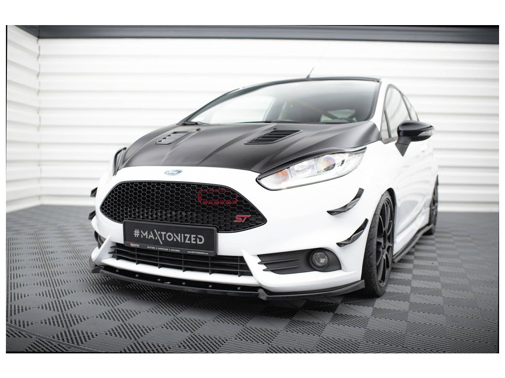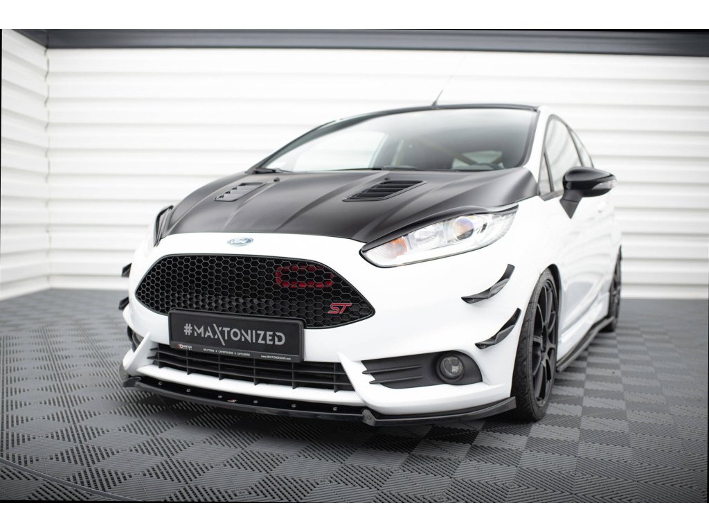 Maxton Design spoiler pod přední nárazník ver.4 pro Ford Fiesta ST Mk7 Facelift, černý lesklý plast ABS