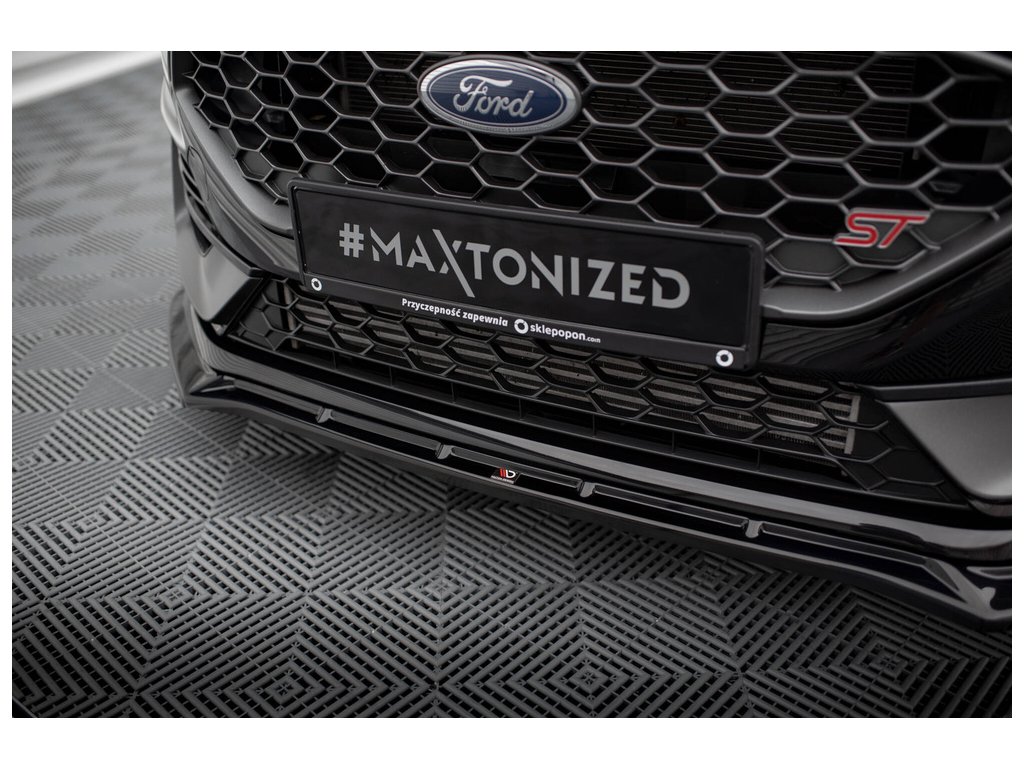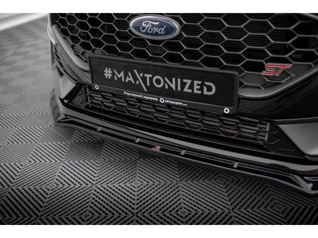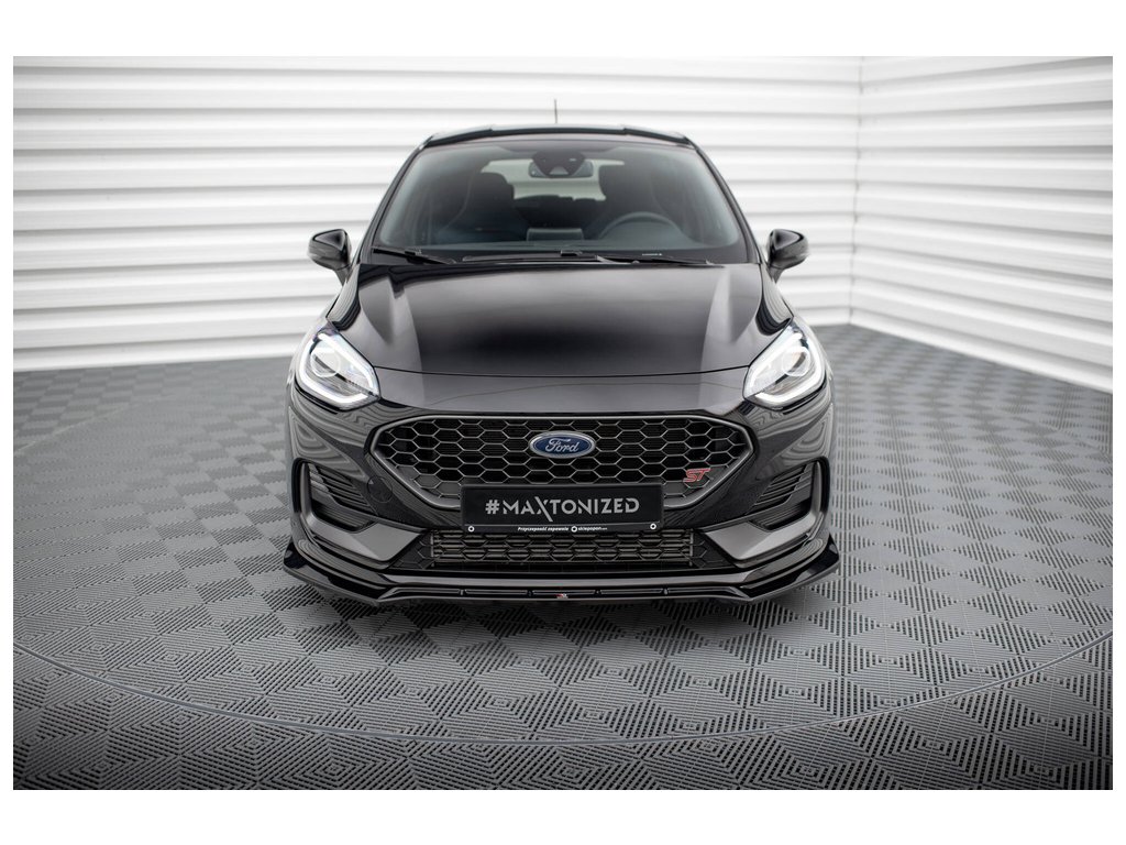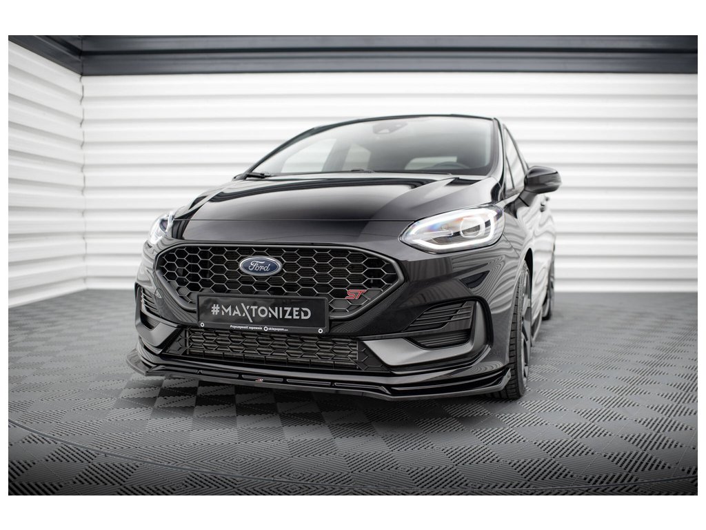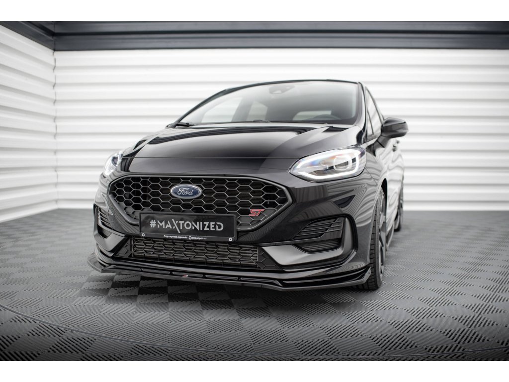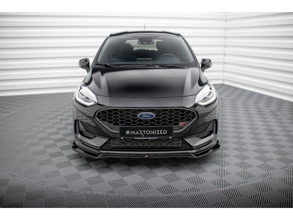 Maxton Design spoiler pod přední nárazník ver.4 pro vozidlo Ford Fiesta ST Mk8 Facelift . Povrchová úprava spoileru černý lesklý plast ABS.