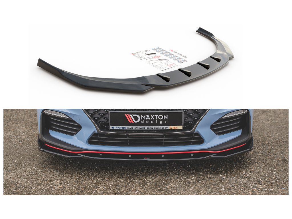Maxton Design spoiler pod přední nárazník ver.4 pro vozidlo Hyundai i30 N Mk3 . Povrchová úprava spoileru carbon-Look.
