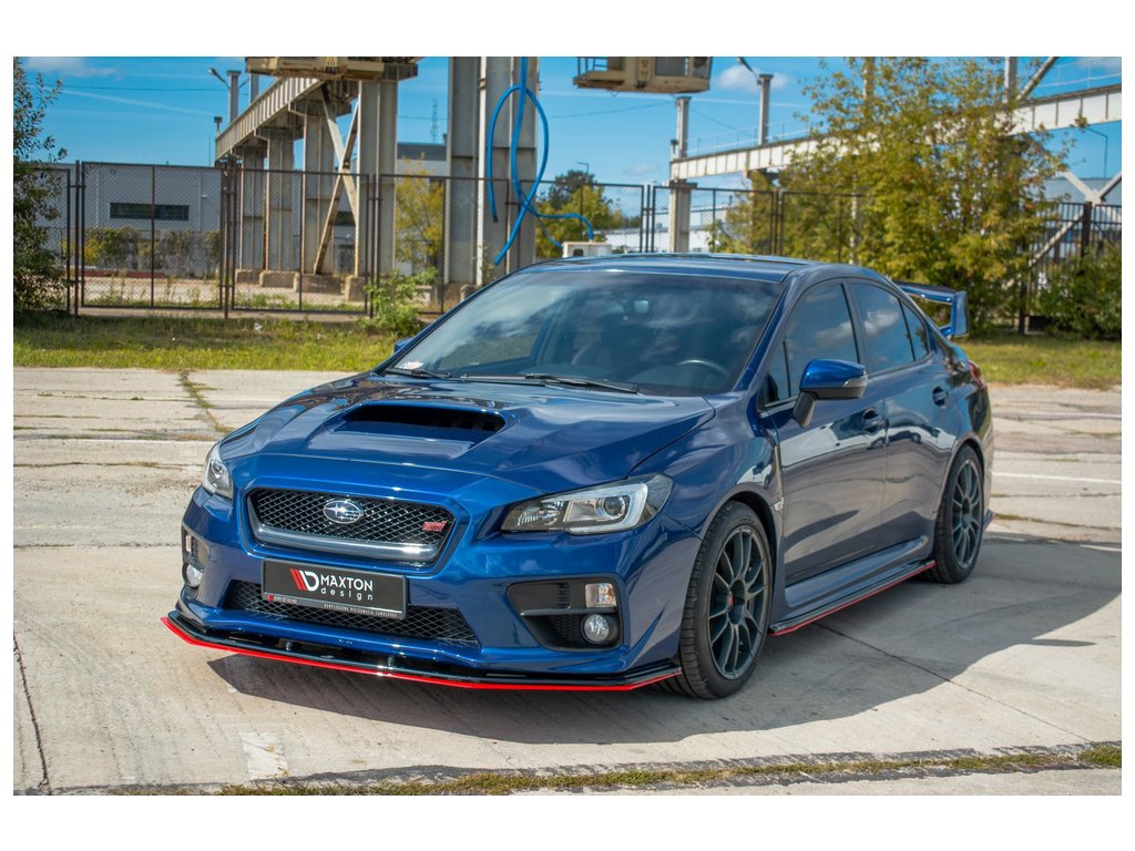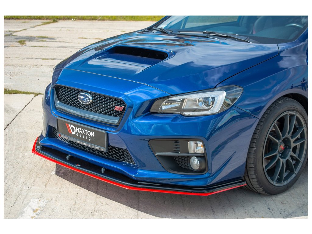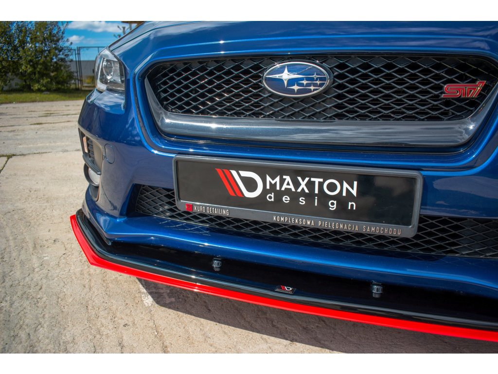 Maxton Design spoiler pod přední nárazník ver.4 pro Subaru Impreza Mk4, černý lesklý plast ABS, s červenou linkou