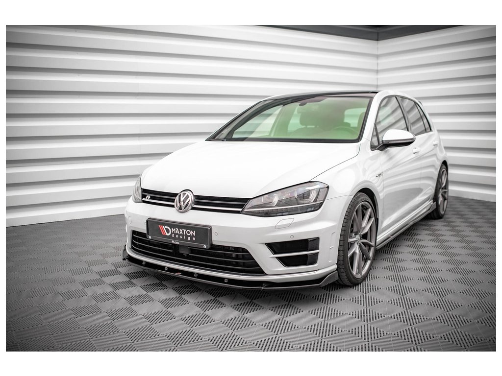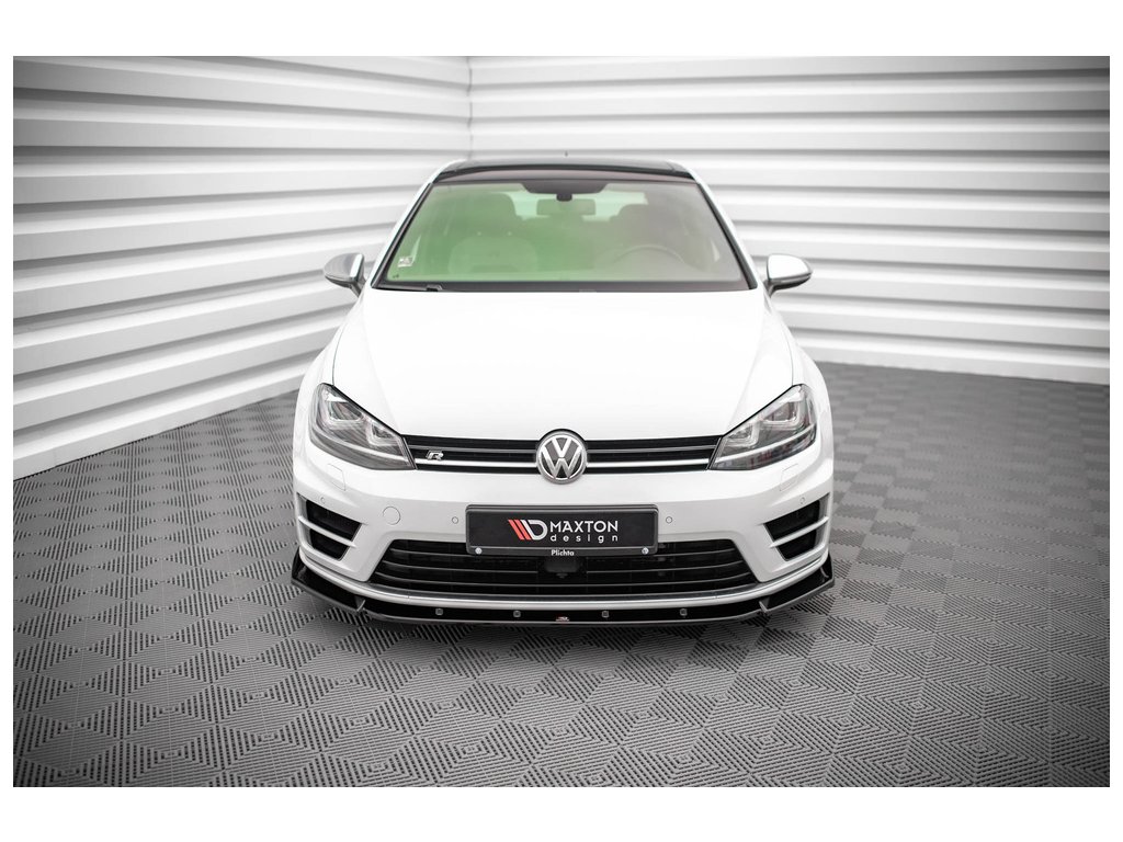 Maxton Design spoiler pod přední nárazník ver.4 pro vozidlo Volkswagen Golf R Mk7 . Povrchová úprava spoileru černý lesklý plast ABS.