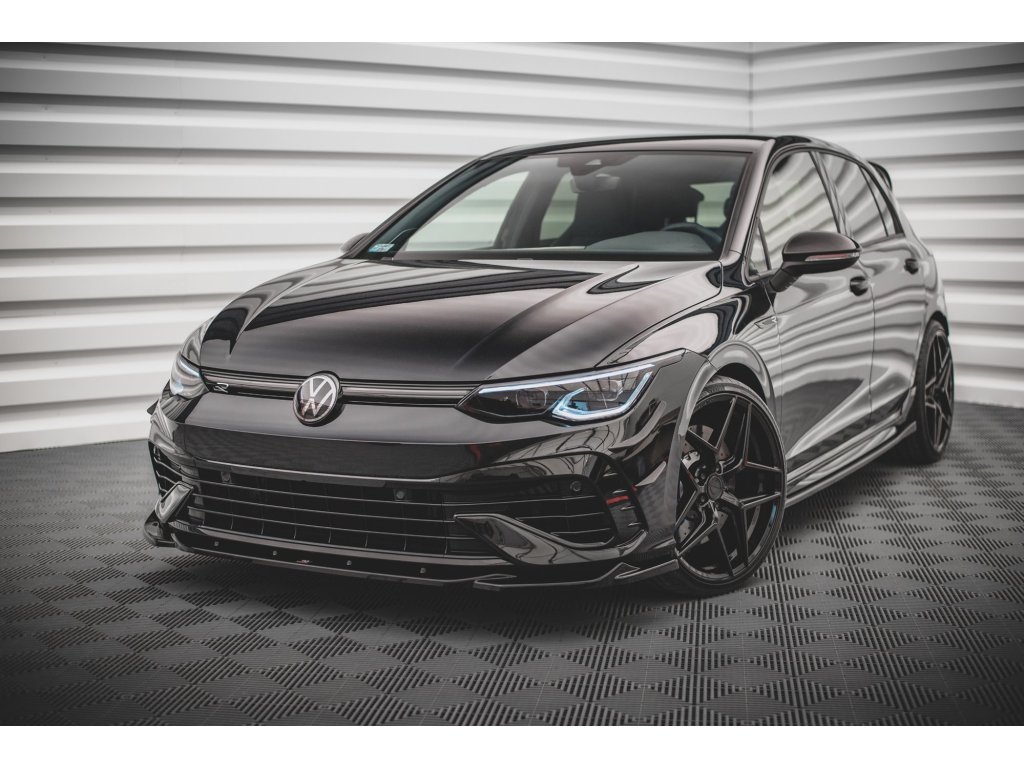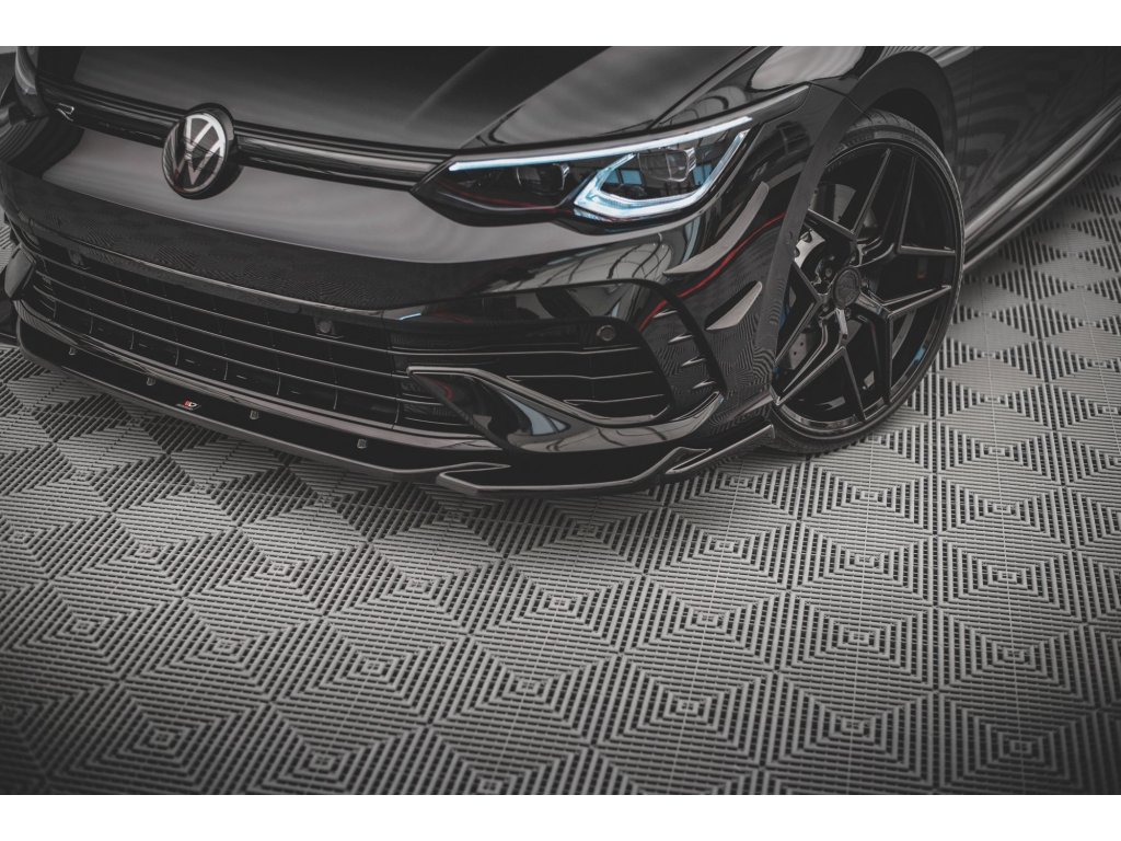 Maxton Design spoiler pod přední nárazník ver.4 pro vozidlo Volkswagen Golf R Mk8 . Povrchová úprava spoileru carbon-Look.