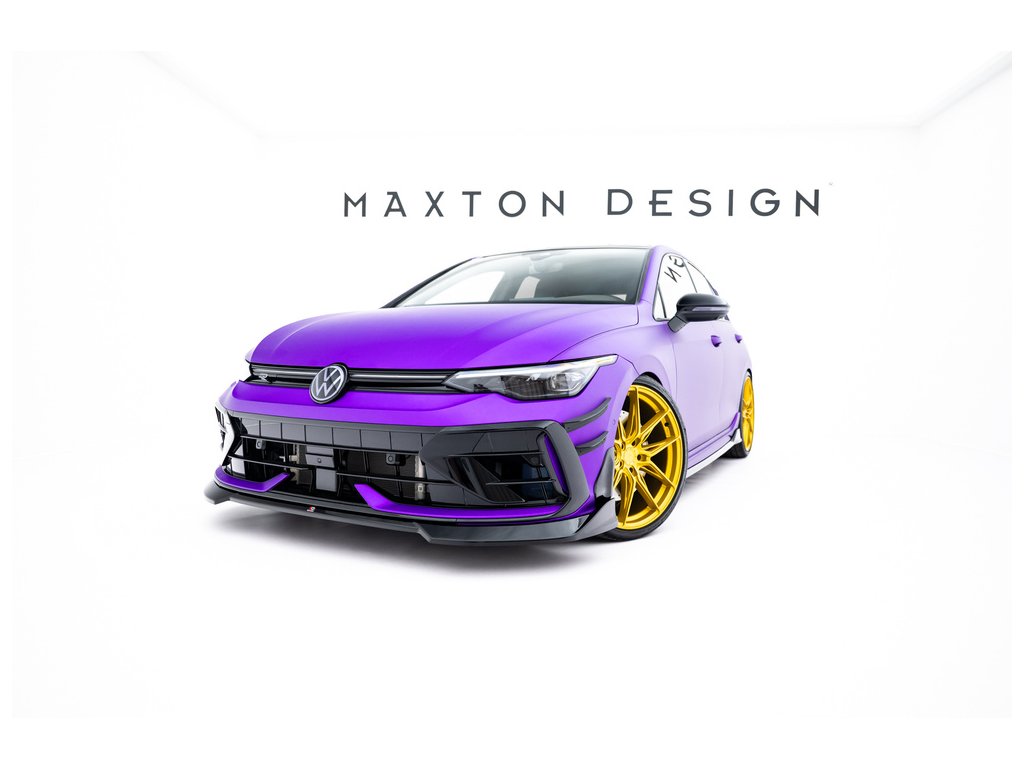 Maxton Design spoiler pod přední nárazník ver.4 pro vozidlo Volkswagen Golf R Mk8 Facelift . Povrchová úprava spoileru černý lesklý plast ABS.