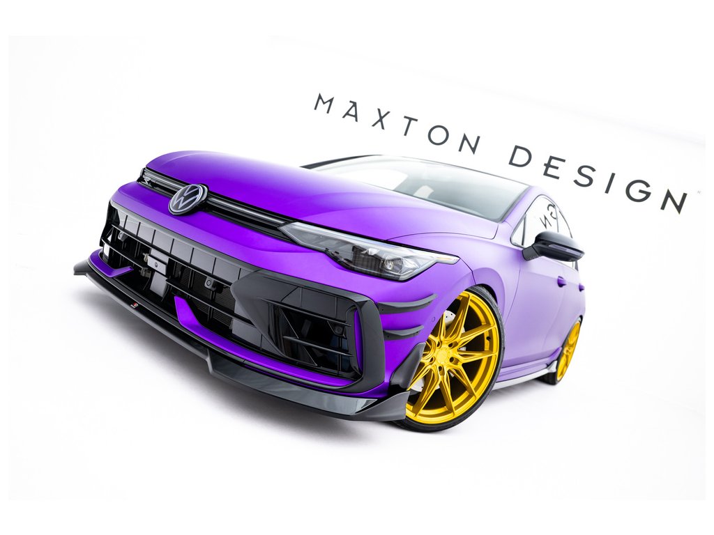 Maxton Design spoiler pod přední nárazník ver.4 pro Volkswagen Golf R Mk8 Facelift, černý lesklý plast ABS