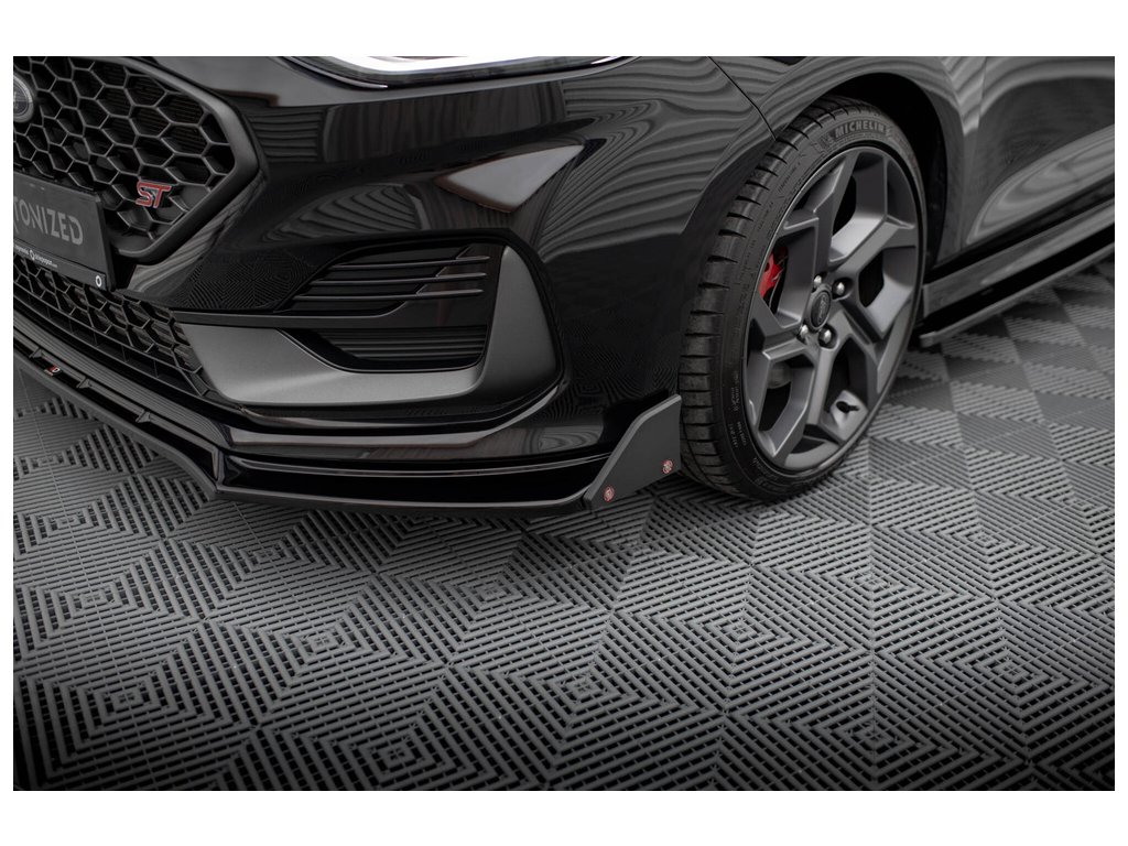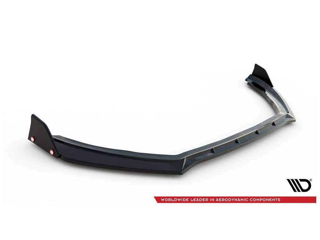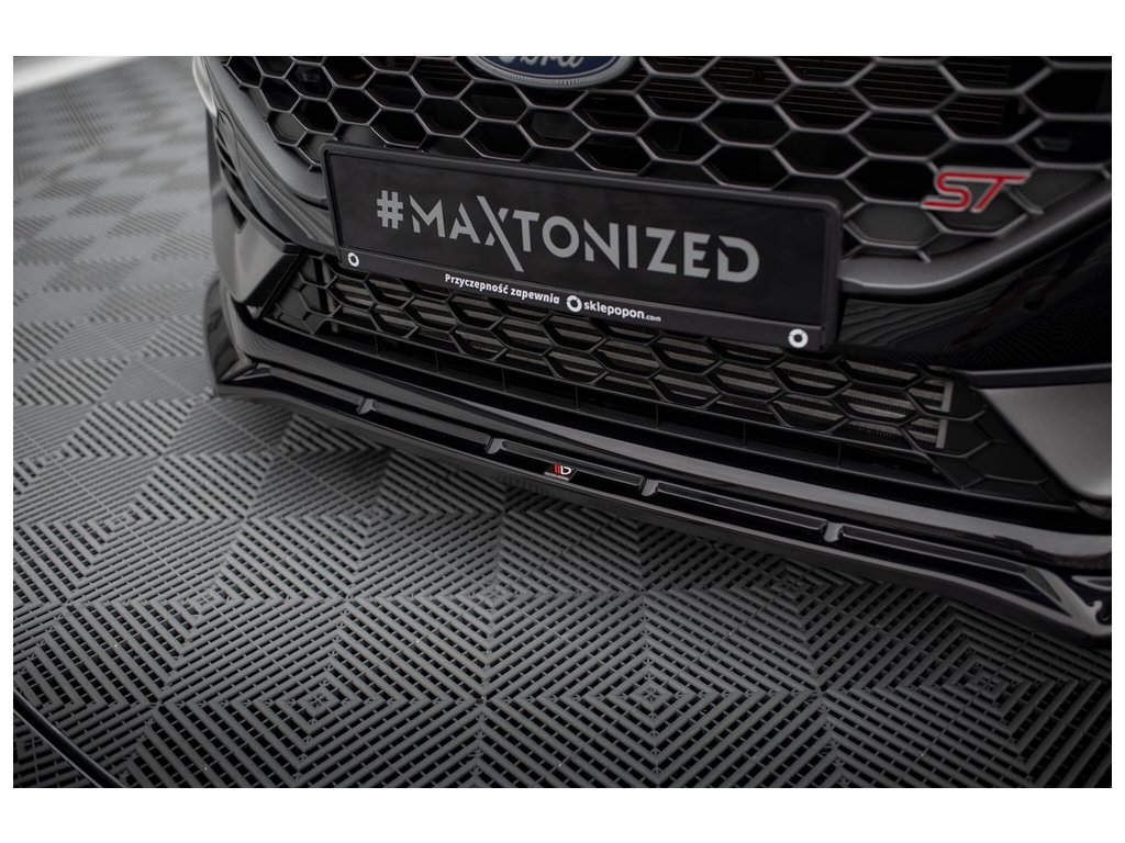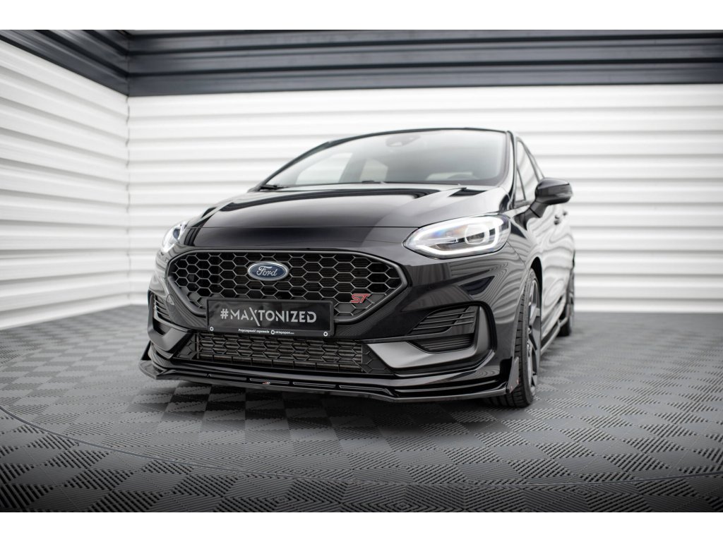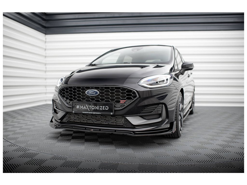 Maxton Design spoiler pod přední nárazník ver.4 s křidélky pro vozidlo Ford Fiesta ST Mk8 Facelift . Povrchová úprava spoileru černý lesklý plast ABS.