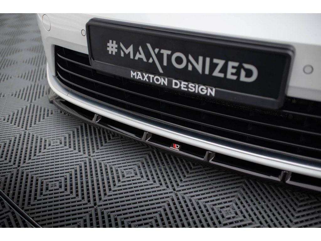 Maxton Design spoiler pod přední nárazník ver.5 pro vozidlo Volkswagen Golf R Mk7 . Povrchová úprava spoileru černý lesklý plast ABS.