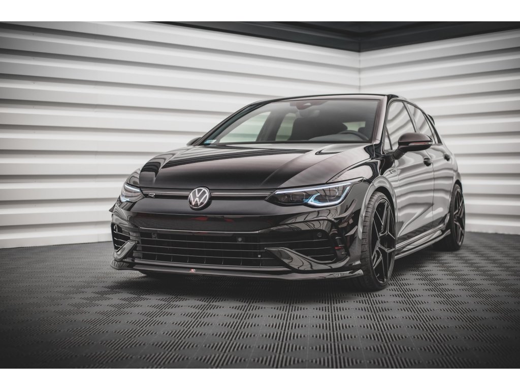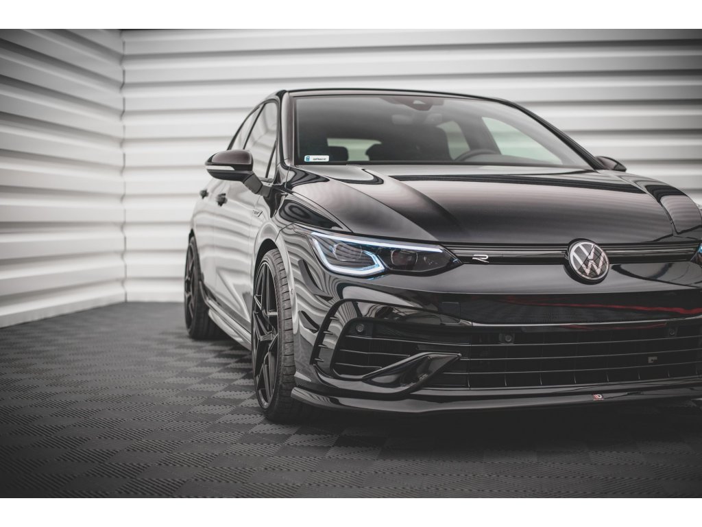 Maxton Design spoiler pod přední nárazník ver.5 pro vozidlo Volkswagen Golf R Mk8 . Povrchová úprava spoileru carbon-Look.