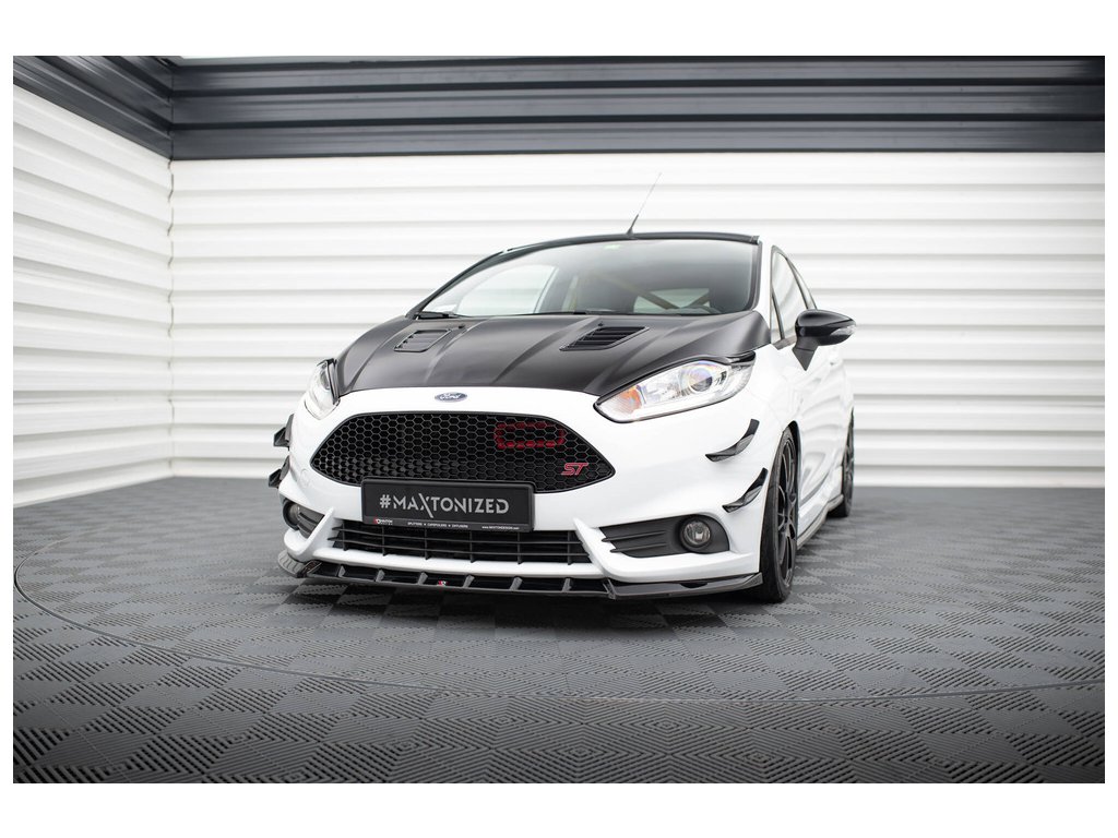 Maxton Design spoiler pod přední nárazník ver.6 pro vozidlo Ford Fiesta ST Mk7 Facelift . Povrchová úprava spoileru černý lesklý plast ABS.