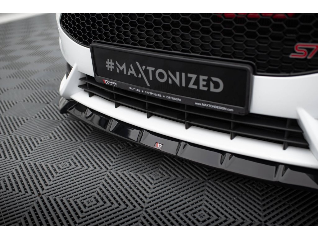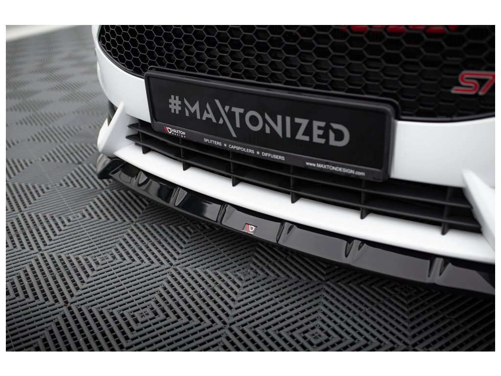 Maxton Design spoiler pod přední nárazník ver.6 s křidélky pro vozidlo Ford Fiesta ST Mk7 Facelift . Povrchová úprava spoileru černý lesklý plast ABS.