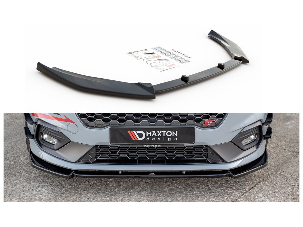 Maxton Design spoiler pod přední nárazník ver.7 pro vozidlo Ford Fiesta ST Mk8 . Povrchová úprava spoileru carbon-Look.