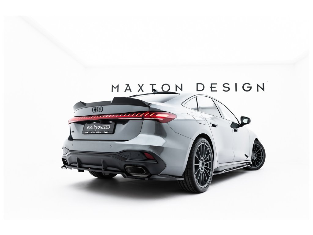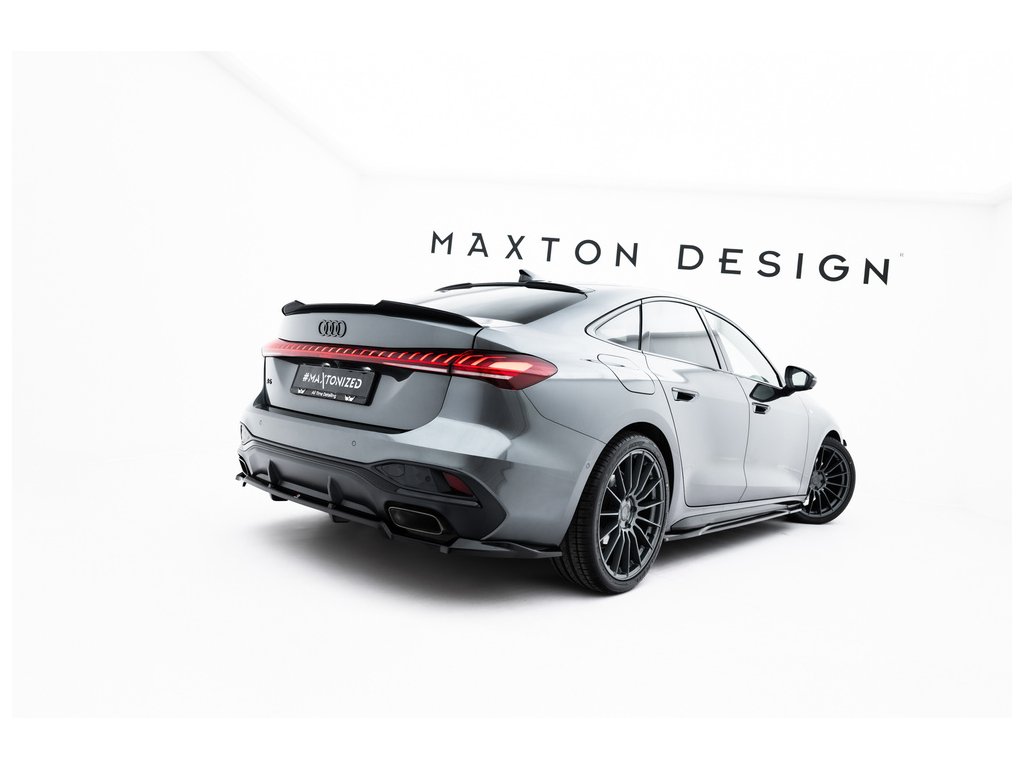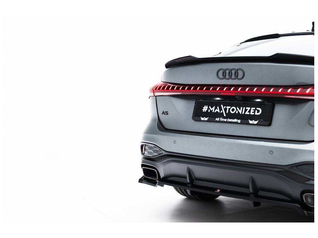 Maxton Design spoiler pod zadní nárazník s žebrováním pro vozidlo Audi A5 B10 . Povrchová úprava spoileru černý lesklý plast ABS.