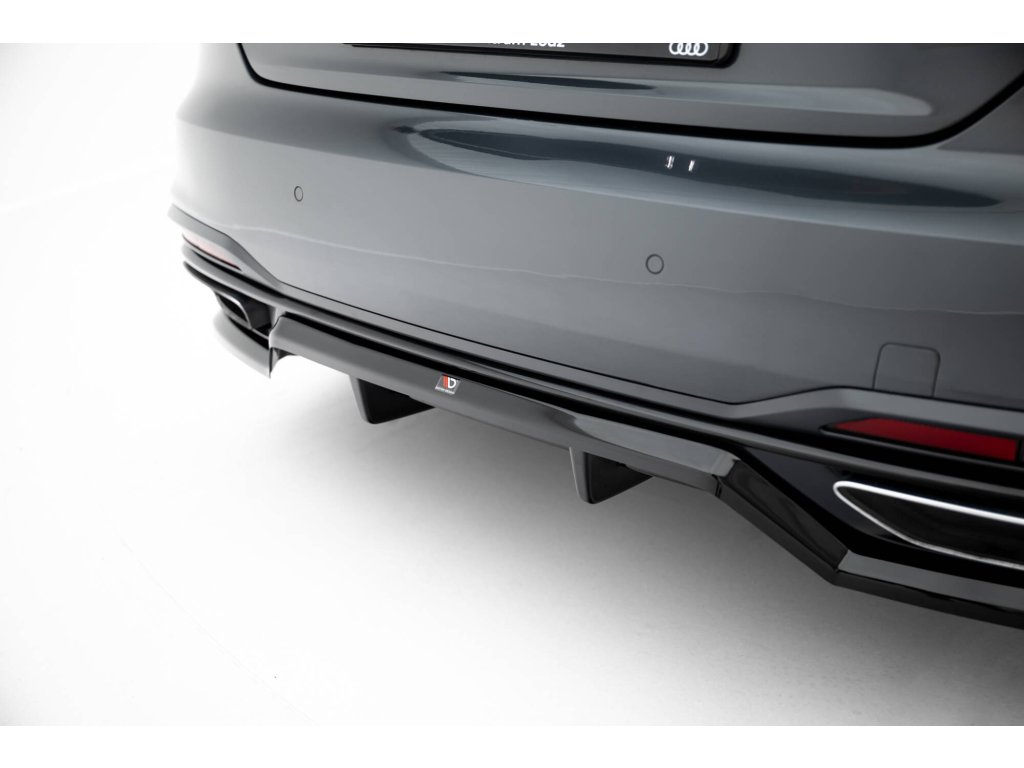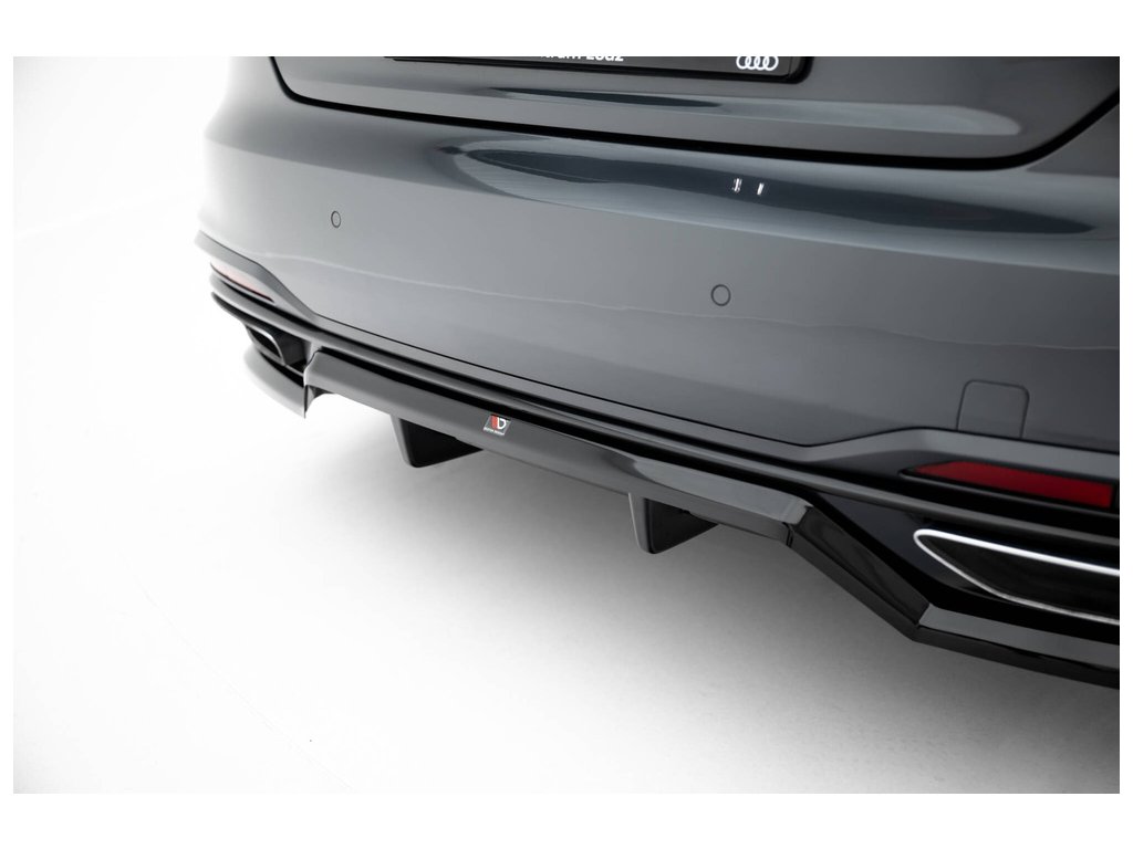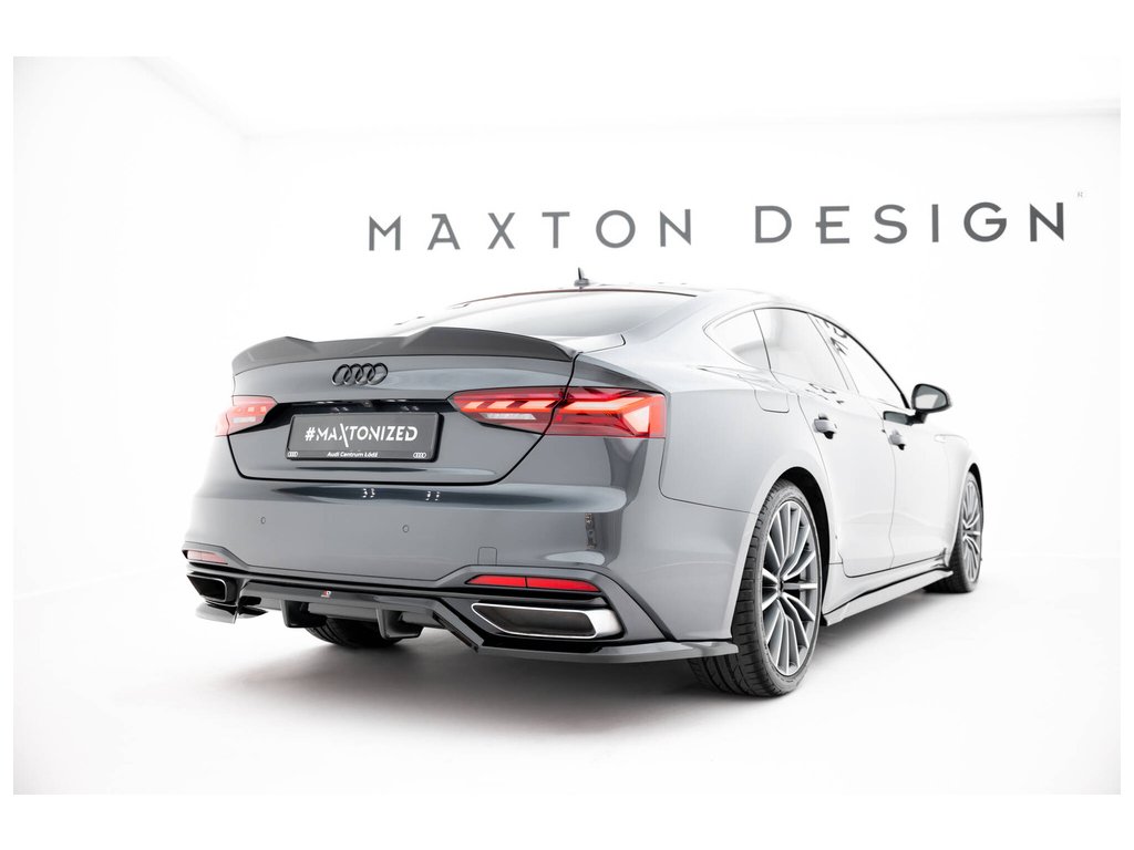 Maxton Design spoiler pod zadní nárazník s žebrováním pro vozidlo Audi A5 F5 Facelift . Povrchová úprava spoileru černý lesklý plast ABS.