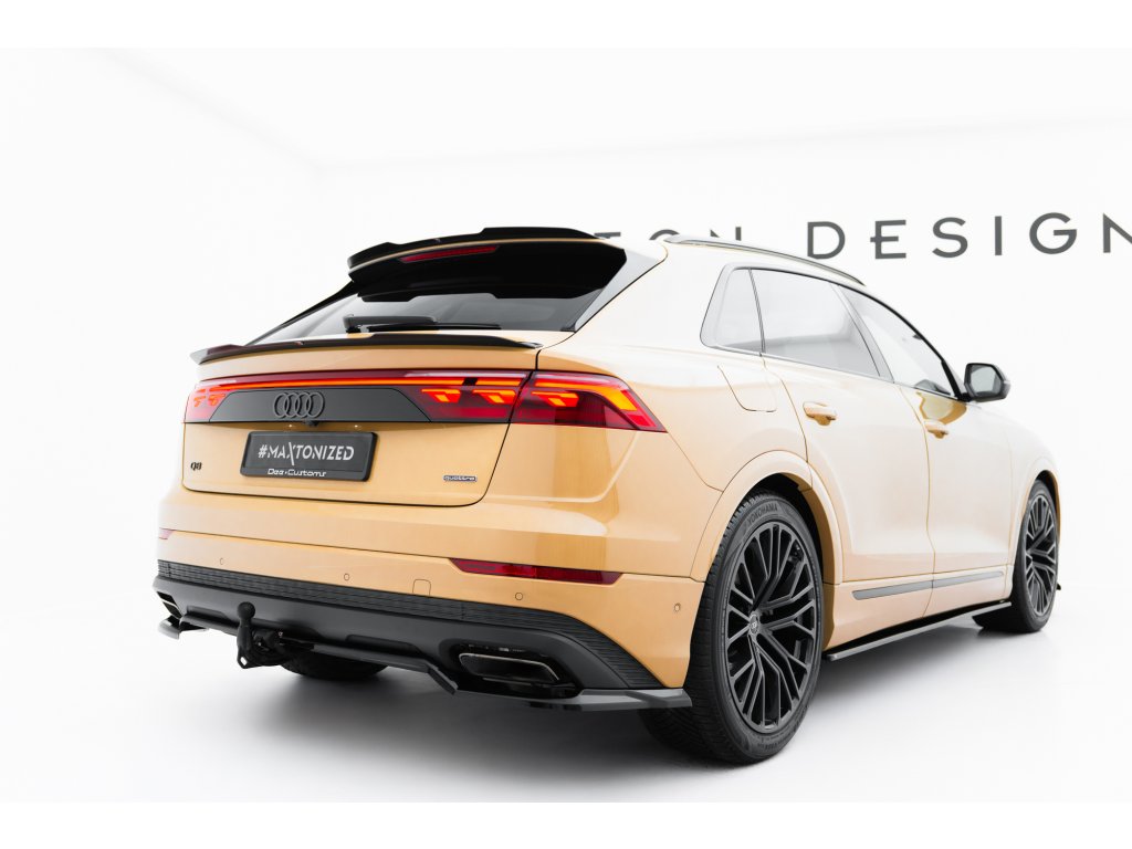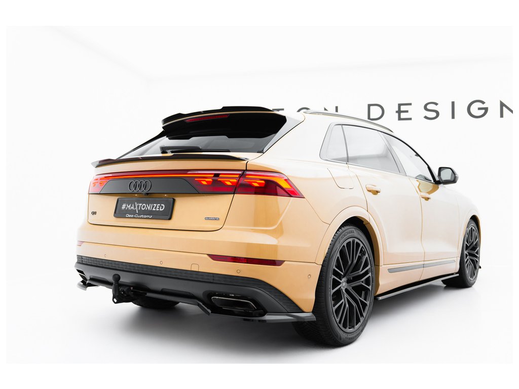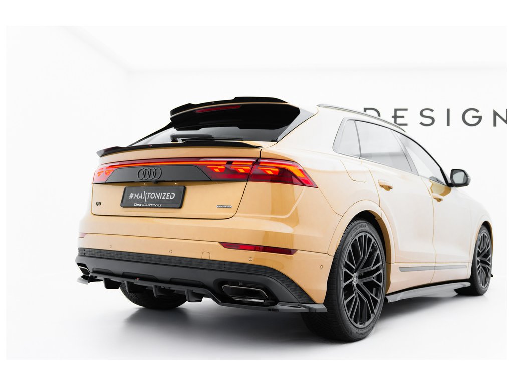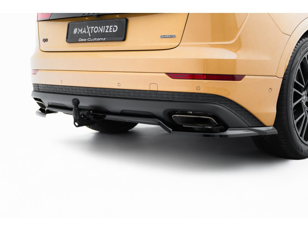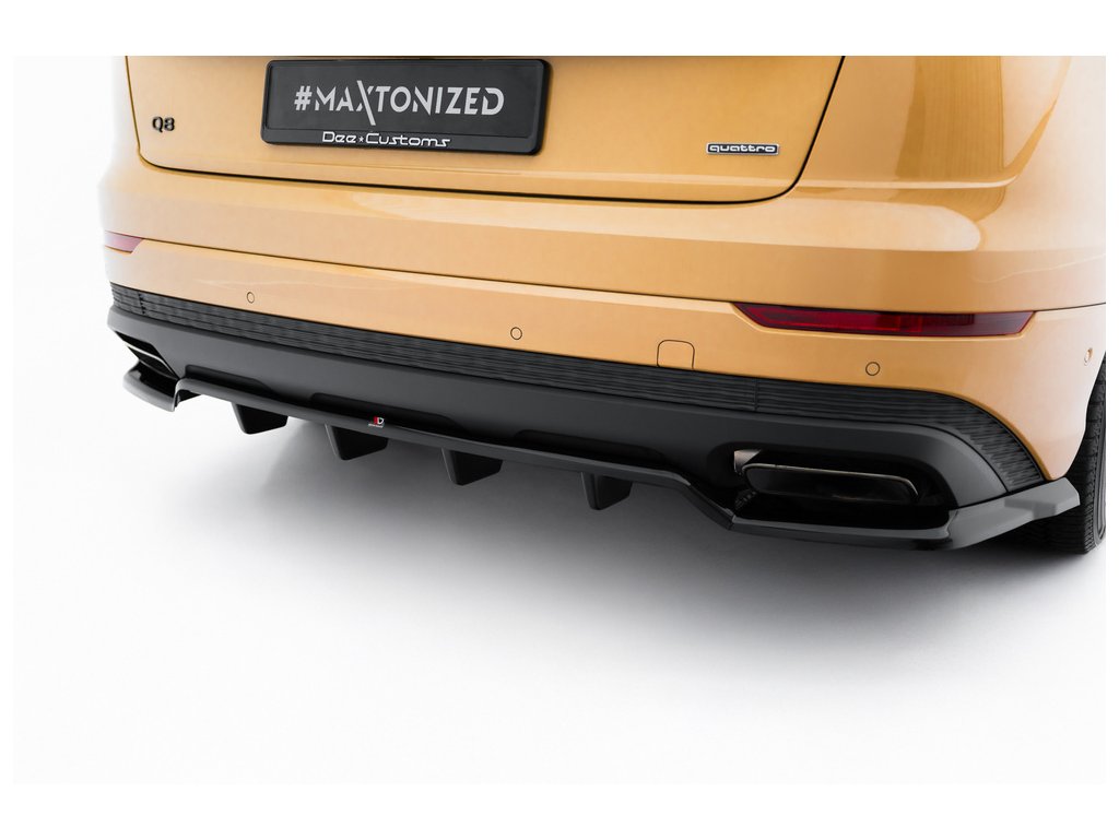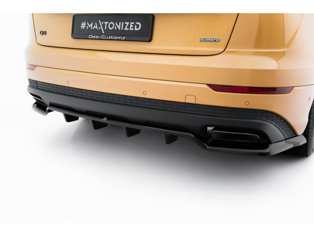 Maxton Design spoiler pod zadní nárazník s žebrováním pro vozidlo Audi Q8 Mk 1 FL . Povrchová úprava spoileru černý lesklý plast ABS.