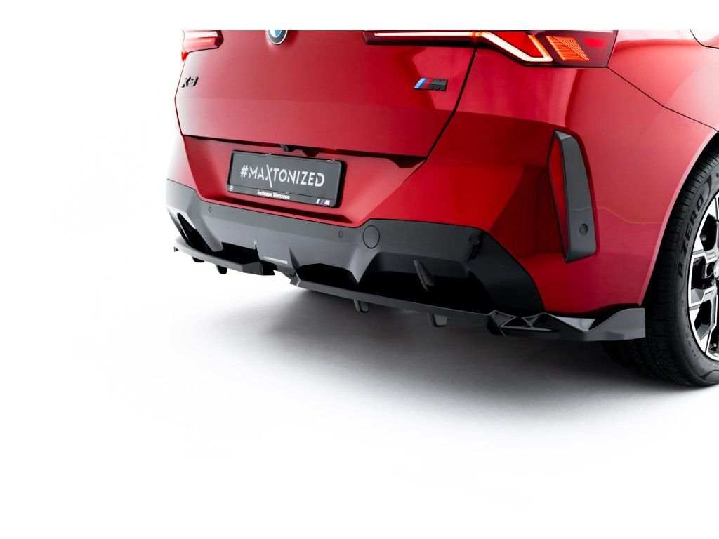Maxton Design spoiler pod zadní nárazník s žebrováním pro vozidlo BMW X3 G45 . Povrchová úprava spoileru černý lesklý plast ABS.