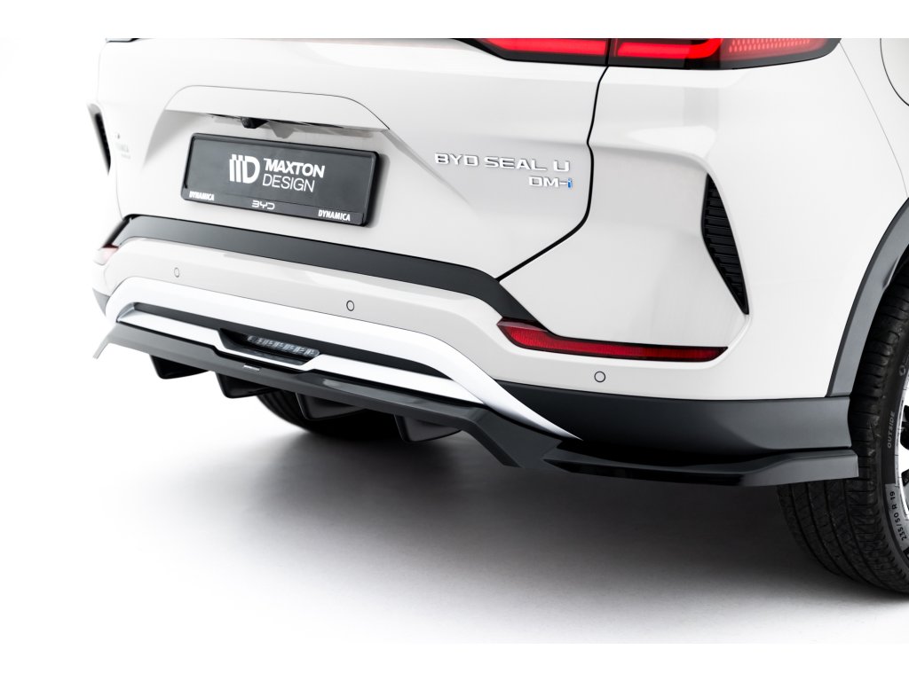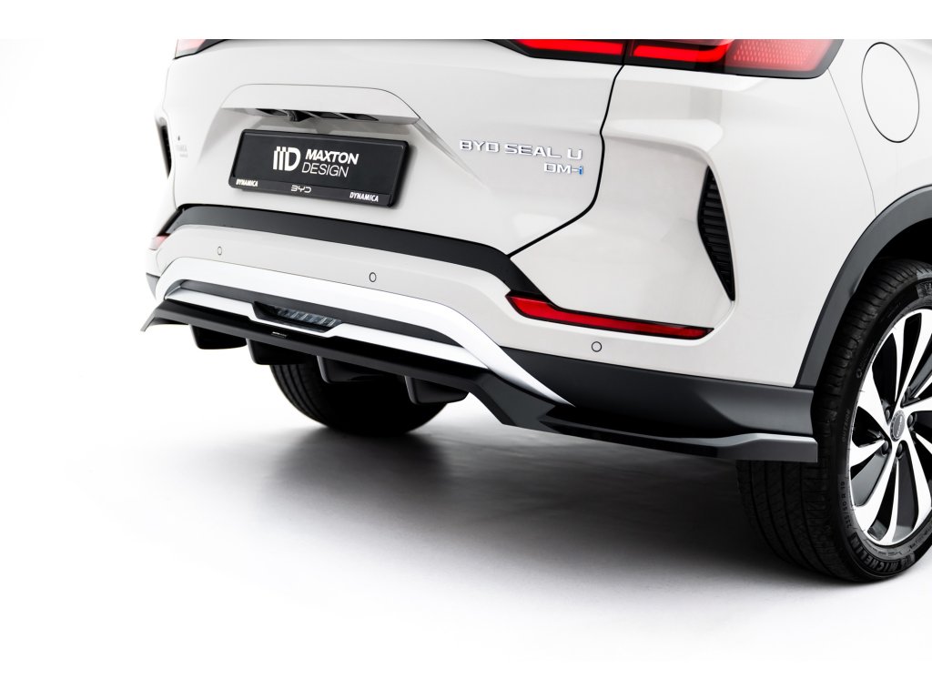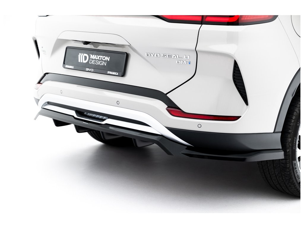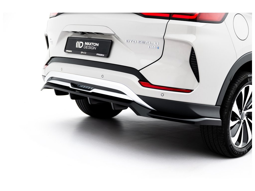 Maxton Design spoiler pod zadní nárazník s žebrováním pro vozidlo BYD Seal U Mk1 . Povrchová úprava spoileru černý lesklý plast ABS.