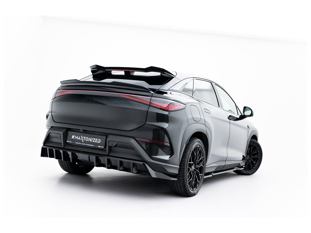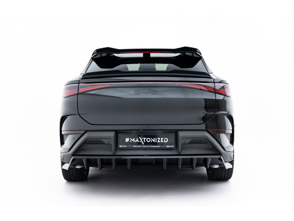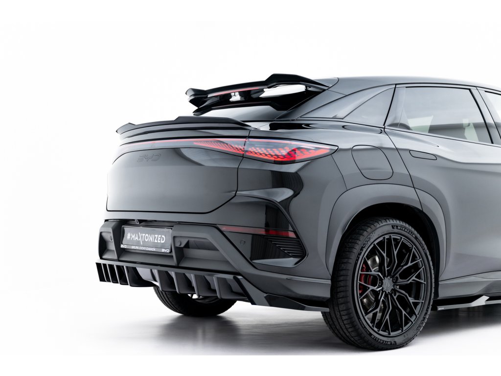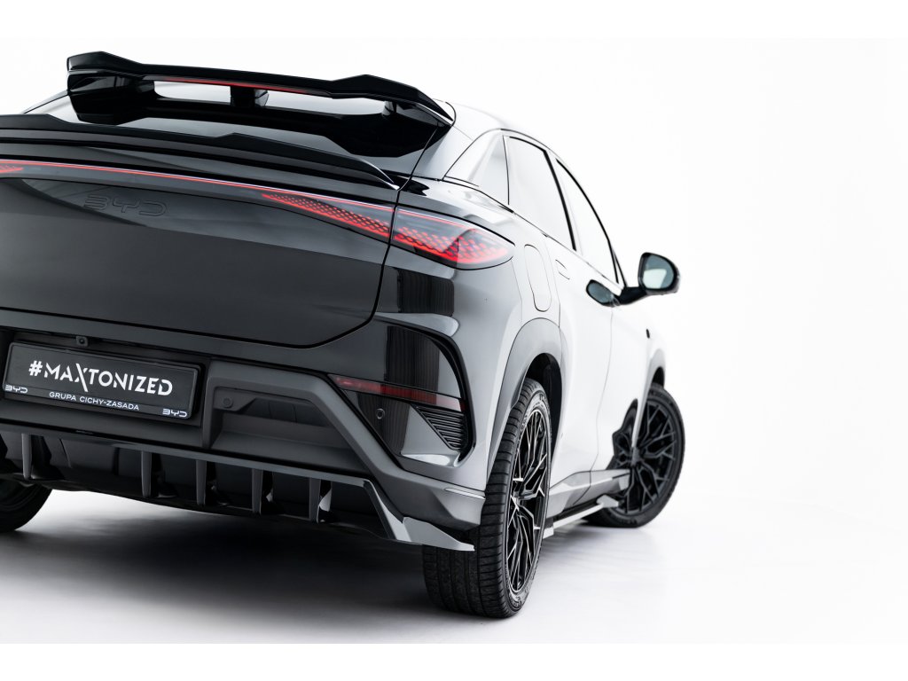 Maxton Design spoiler pod zadní nárazník s žebrováním pro vozidlo BYD Sealion 7 Mk1 . Povrchová úprava spoileru černý lesklý plast ABS.