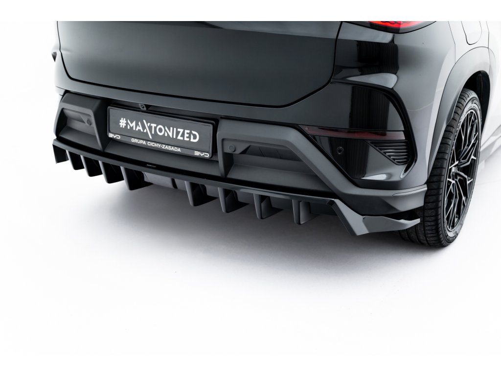 Maxton Design spoiler pod zadní nárazník s žebrováním pro BYD Sealion 7 Mk1, černý lesklý plast ABS
