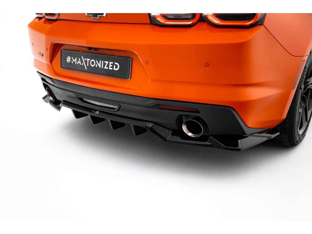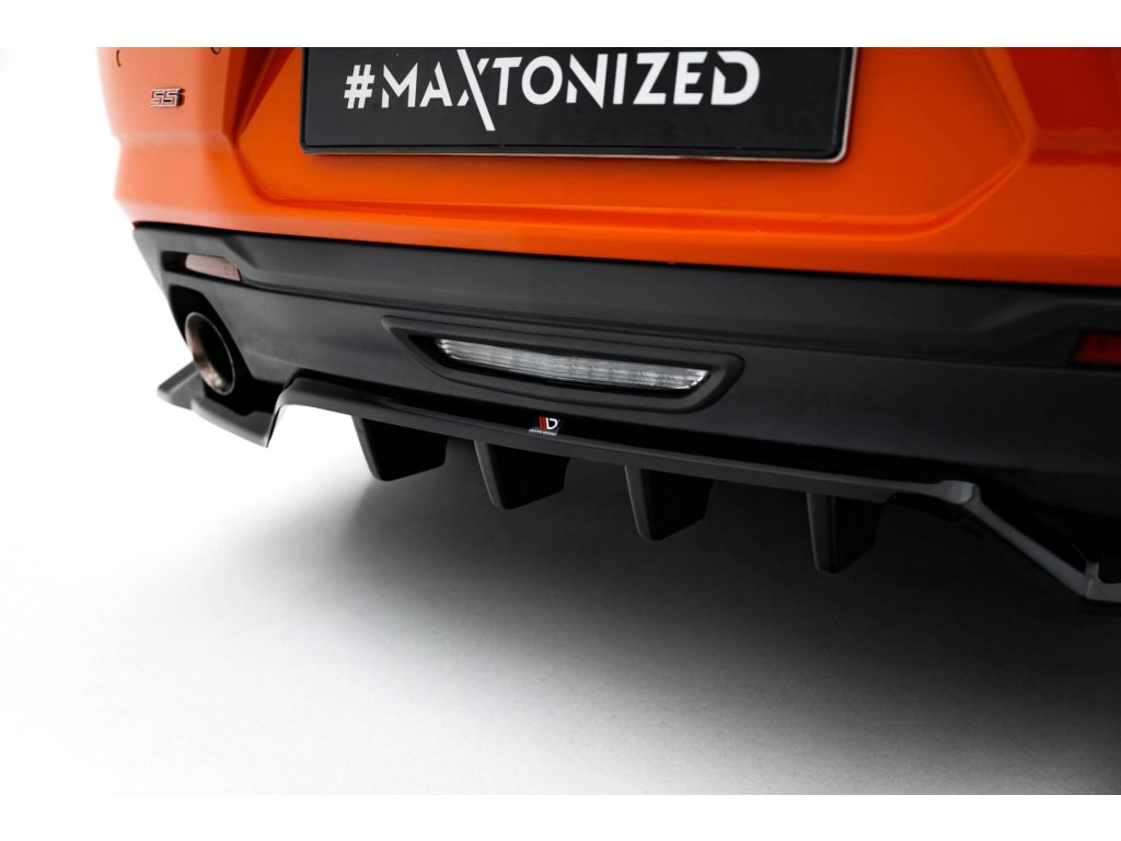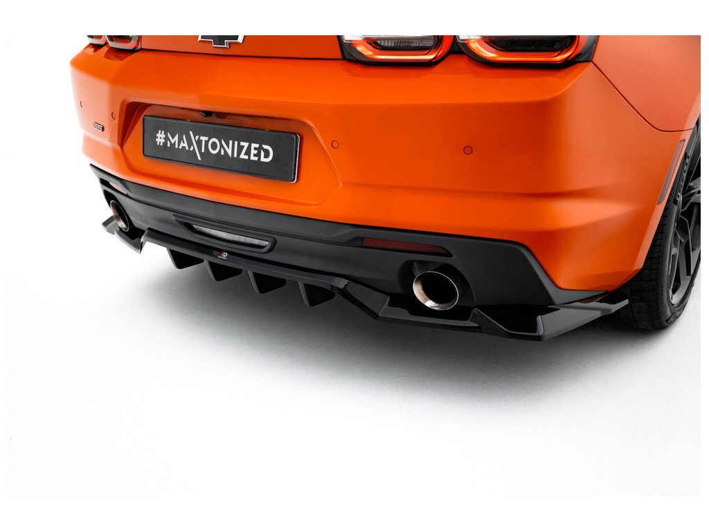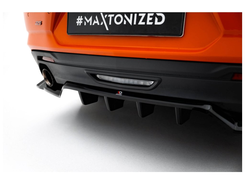 Maxton Design spoiler pod zadní nárazník s žebrováním pro Chevrolet Camaro SS Mk6 Facelift, černý lesklý plast ABS