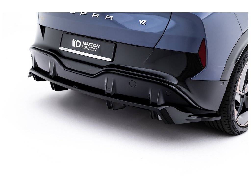 Maxton Design spoiler pod zadní nárazník s žebrováním pro vozidlo Cupra Tavascan Mk1 . Povrchová úprava spoileru černý lesklý plast ABS.