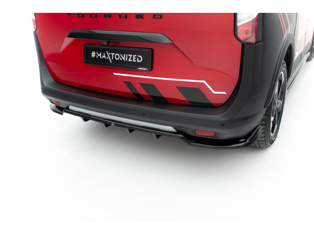Maxton Design spoiler pod zadní nárazník s žebrováním pro vozidlo Ford Tourneo Courier Mk2 . Povrchová úprava spoileru černý lesklý plast ABS.