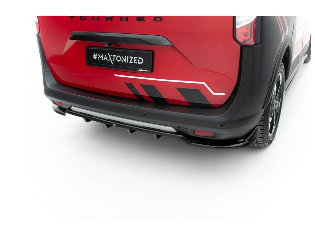 Maxton Design spoiler pod zadní nárazník s žebrováním pro Ford Tourneo Courier Mk2, černý lesklý plast ABS