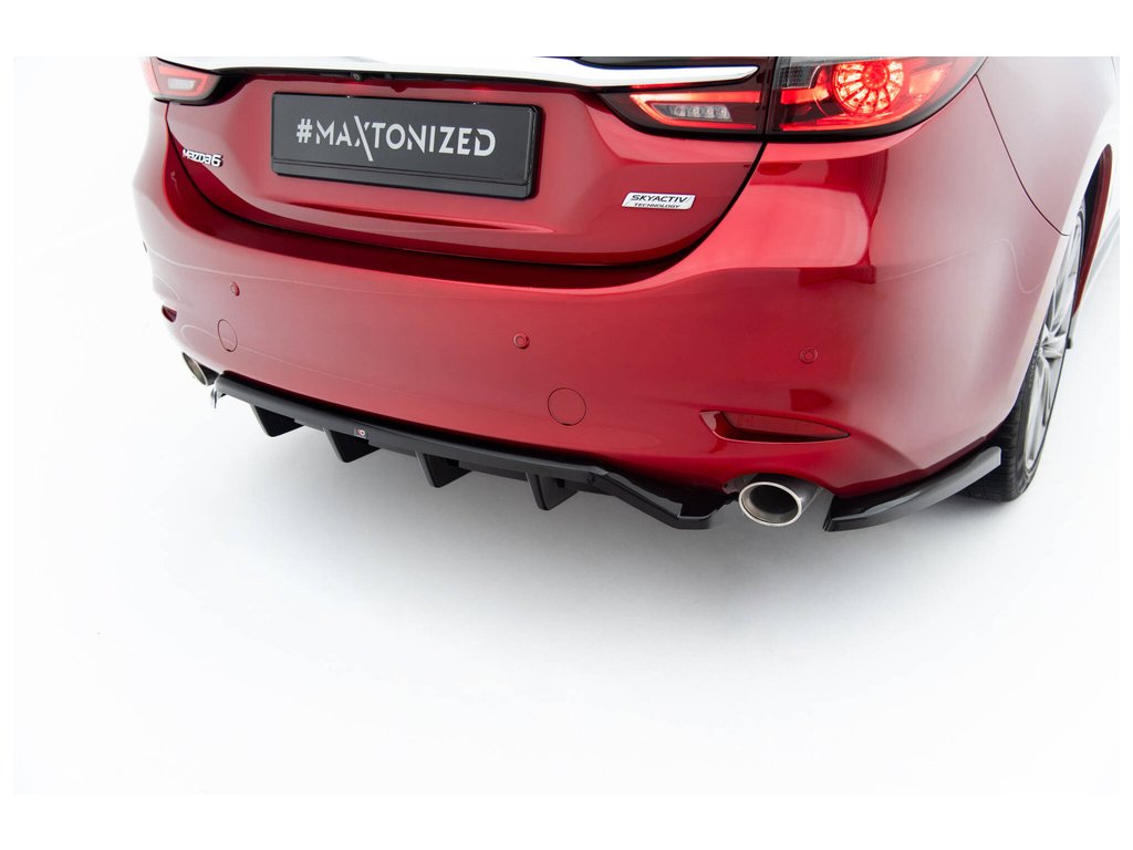 Maxton Design spoiler pod zadní nárazník s žebrováním pro vozidlo Mazda 6 Mk3 FL . Povrchová úprava spoileru černý lesklý plast ABS.