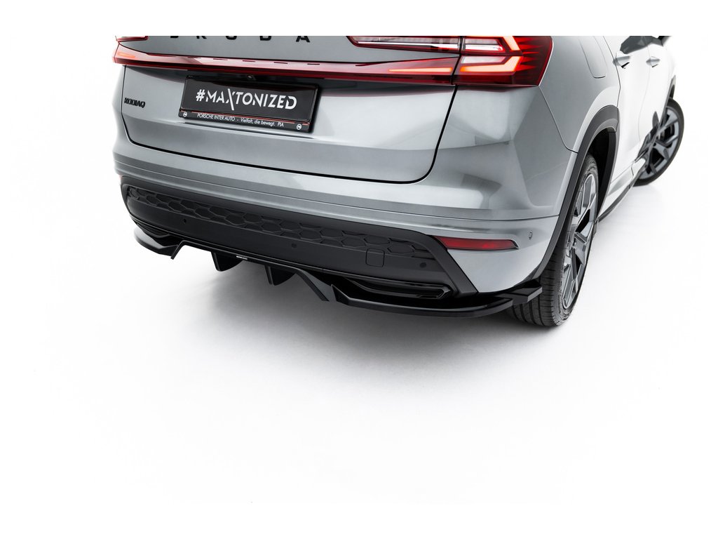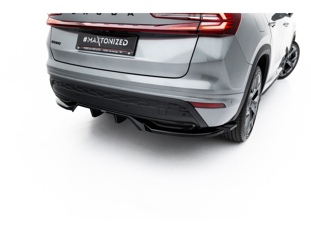 Maxton Design spoiler pod zadní nárazník s žebrováním pro Škoda Kodiaq Mk2 Sportline, černý lesklý plast ABS