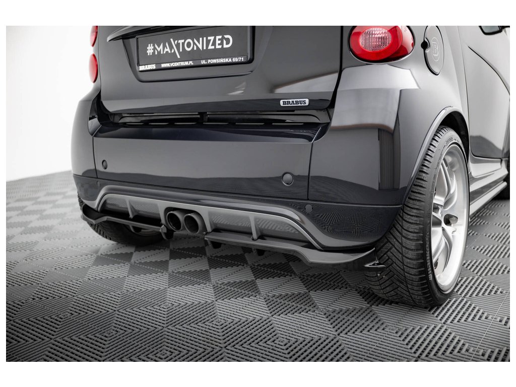 Maxton Design spoiler pod zadní nárazník s žebrováním pro Smart Fortwo C451 Facelift, černý lesklý plast ABS, Brabus