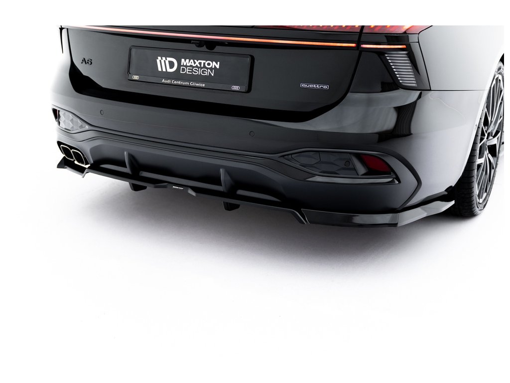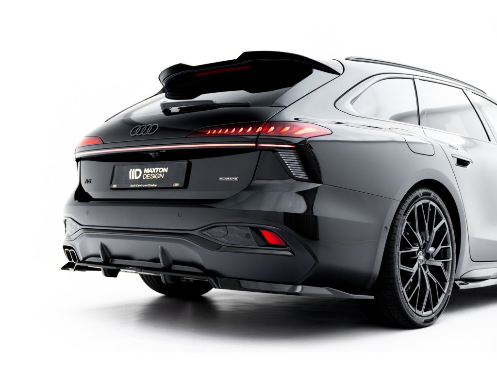 Maxton Design spoiler pod zadní nárazník s žebrováním v.1 pro vozidlo Audi A6 C9 . Povrchová úprava spoileru černý lesklý plast ABS.