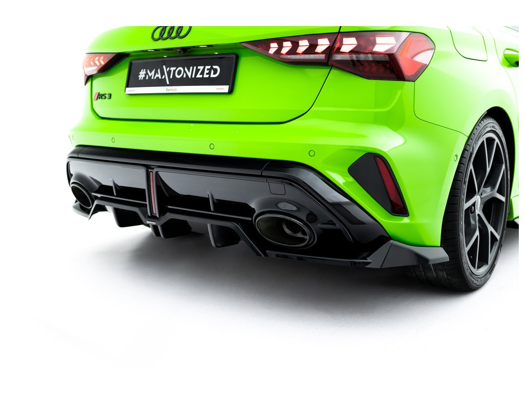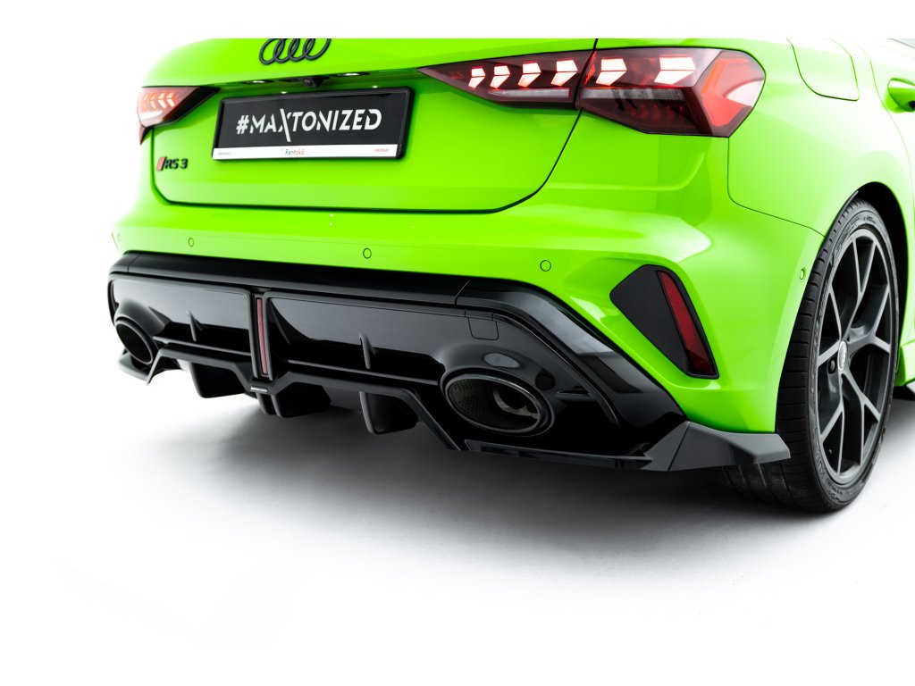 Maxton Design spoiler pod zadní nárazník s žebrováním v.1 pro Audi RS3 8Y Facelift, černý lesklý plast ABS, Sportback