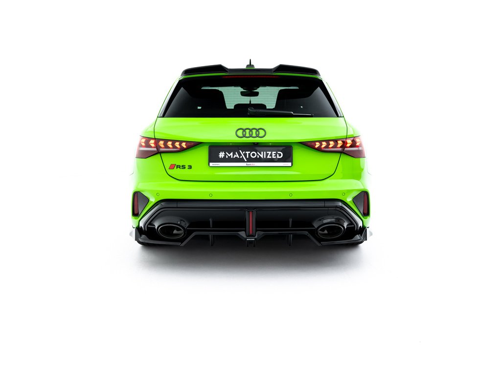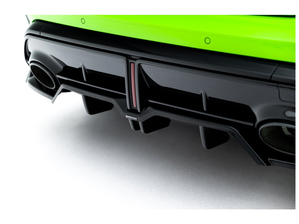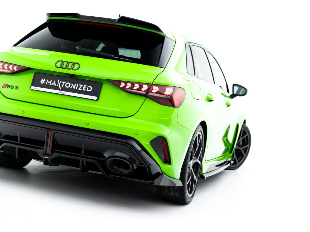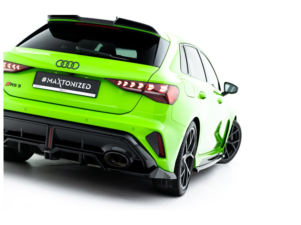 Maxton Design spoiler pod zadní nárazník s žebrováním v.1 pro vozidlo Audi RS3 8Y Facelift . Povrchová úprava spoileru černý lesklý plast ABS.