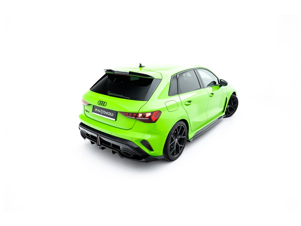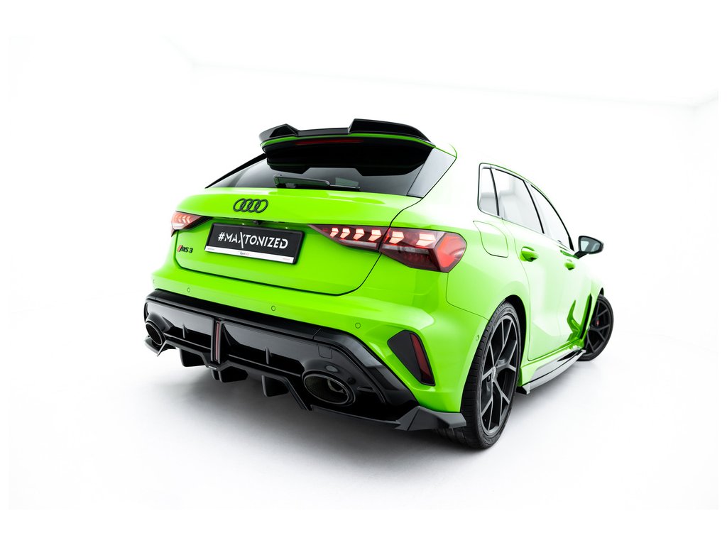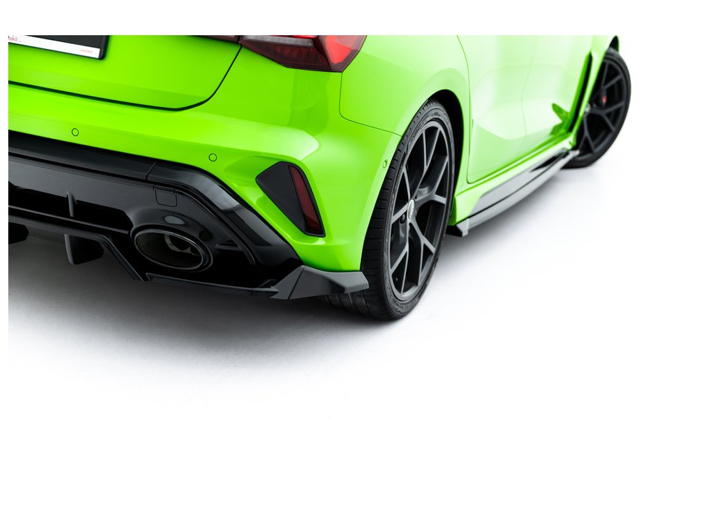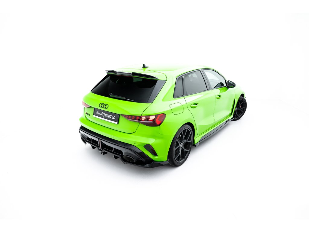 Maxton Design spoiler pod zadní nárazník s žebrováním v.1 pro vozidlo Audi RS3 8Y Facelift . Povrchová úprava spoileru černý lesklý plast ABS.